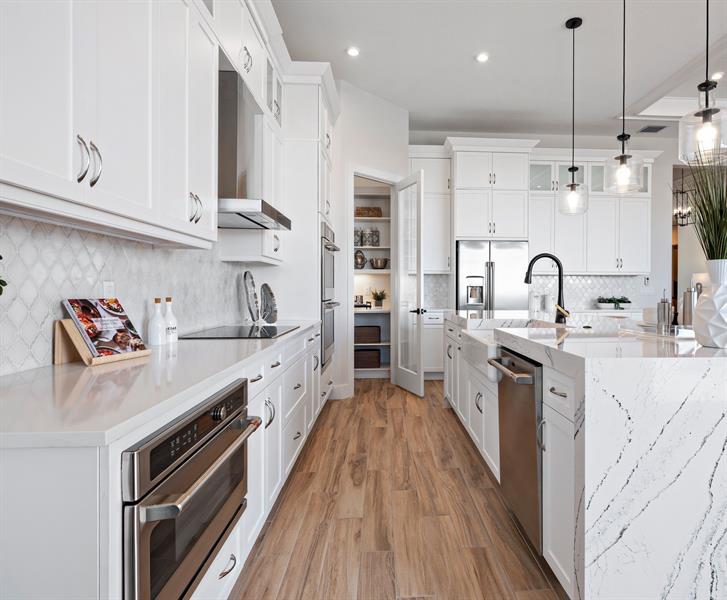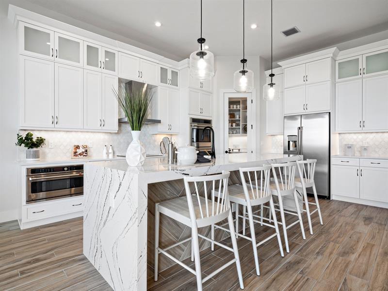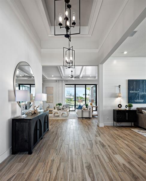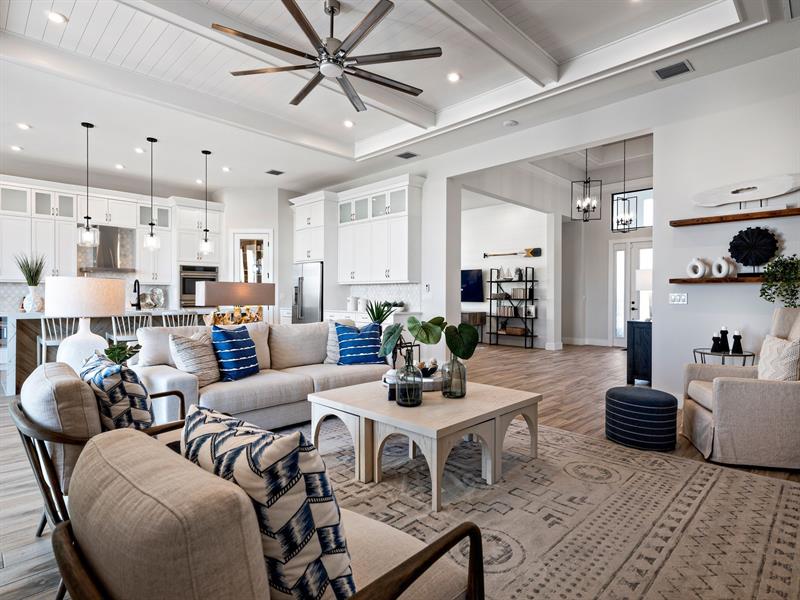 Discover luxury living at PGA Village Verano, with resort-style amenities: private Pickleball Center with 27 courts, fitness facilities, indoor and outdoor pools, tennis, bocce, and basketball courts. Includes access to PGA Golf Club for its members, plus billiards, library, kitchen, and a full-time Lifestyle Director.. The spacious Riley welcomes the natural light through its many large windows overlooking the Covered Lanai. The Dining and Great Room offers formal dining while your large eat-in Kitchen Island provides casual dining experience. Owner’s Suite features tray ceilings, oversized shower, dual quartz vanities, and a large walk-in. All Beds feature en Suite Baths. Disclaimer: Photos of a decorated model home are for reference only. Actual home will differ.