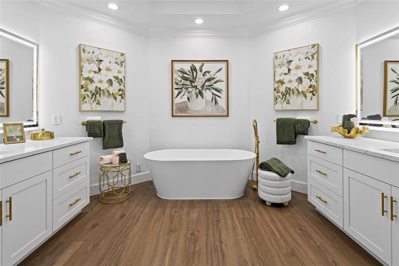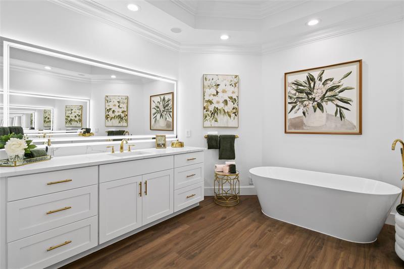 This rare Tesoro estate redefines single-story elegance, offering nearly 4,000 square feet of beautifully reimagined living space with four bedrooms, five bathrooms, and a two-car garage plus a separate golf cart garage. Every detail of this home has been renewed with the precision and design sensibility of a luxury model home—creating the perfect blend of classic Mediterranean architecture and sleek, modern sophistication.