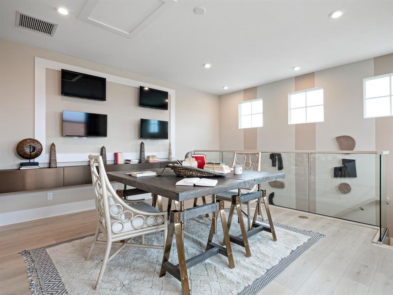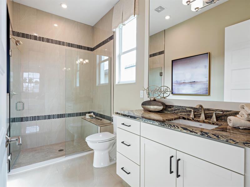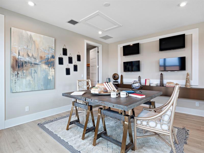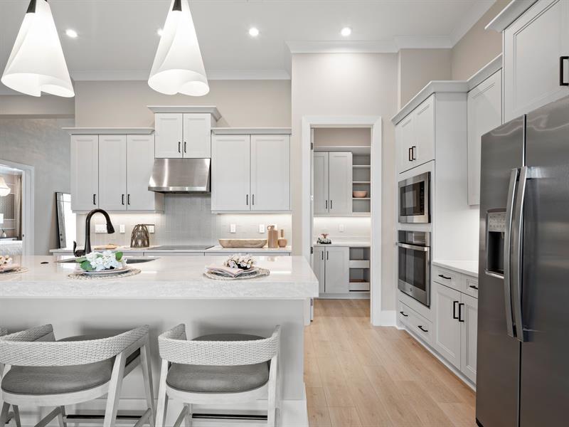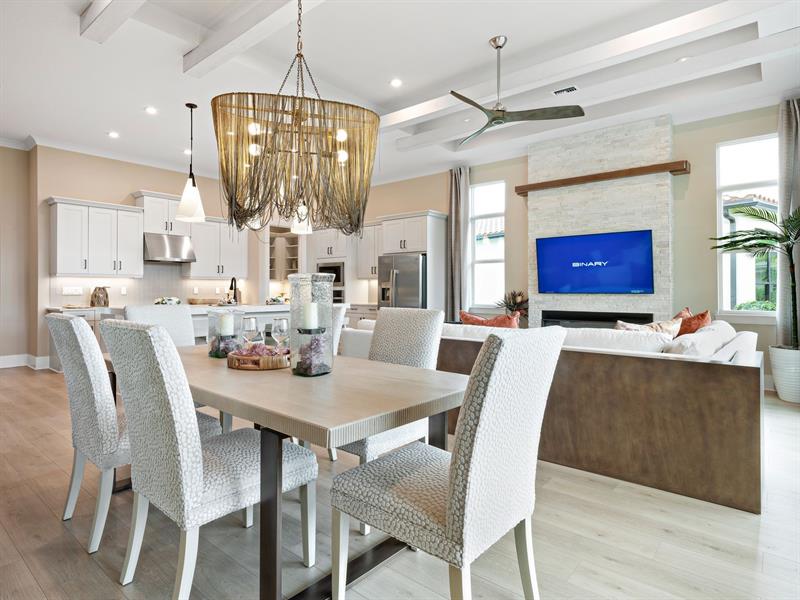 This beautiful Lila with Lakeview Homesite comes with 3-bedroom, 3-bath home offers a spacious family room, versatile flex room, and a covered lanai perfect for outdoor living. The gourmet kitchen features a premium configuration with Cambria Quartz countertops, complemented by upgraded tile flooring throughout the home for a sleek, modern finish. Mosaic residents have access to resort story amenities, including the pool, fitness center and pickleball, all minutes form I-95, dining, and shopping. Photos of a decorated model home are for reference only. Actual home will differ.