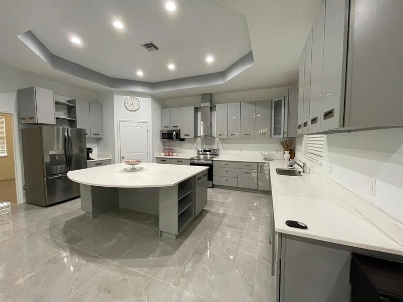 4 Bedroom 3 Bath Custom Built Home. Newly built in 2021. Modern Elegance and wide open floor plan with 10-foot high ceilings in every room, accentuated by tray ceilings in the living room, kitchen, dining area, and 2 large master bedroom En-Suites with His and Hers walk in showers and separate bathing tub. Designed with a split bedroom layout on opposite sides of the home for privacy and additional 2 more guest bedrooms as well—each detail meticulously designed to elevate quality of living in this architecturally well designed home. Screened in Florida room, Laundry room. No HOA!