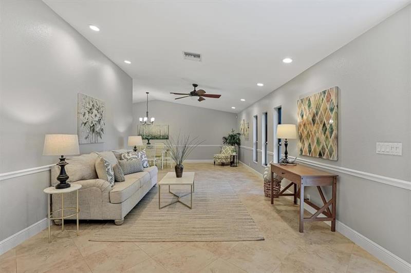 open spaces Fla room The home sits on a half acre Estate elevated corner lot with mature landscape, well water sprinklers a Tropical Oasis Resort-Like Large pool screened lanai enjoyable living. Inside a large kitchen with lots of room, fireplace ADTsecurity owned cameras In-laws BD own entry by pool Granite countertops new stainless appliances laundry rm Bring the family fill up the four bedrooms and 3 baths in the split floor plan. Hurricane impact windows, new water heater AC2017 2 car garage new roof '24, new electric, plumbing NO HOA This could be your dream home!