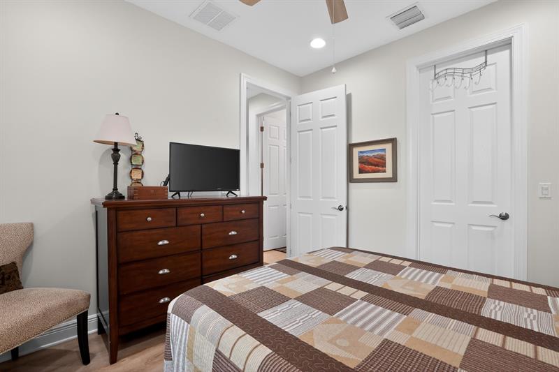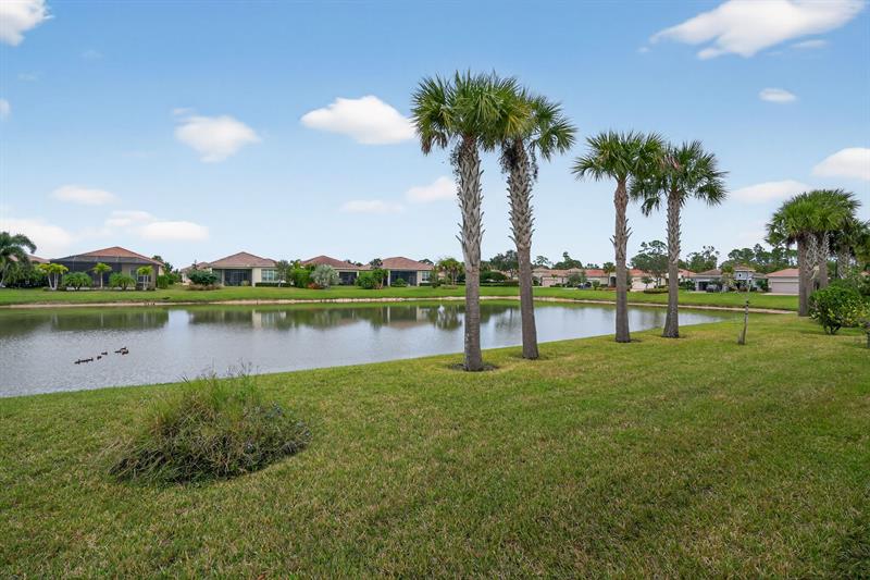 2 bedroom, 2bath, one level villa with double garage on a lake in a gated community with lots of amenities to include 2 community pools, 27 pickleball courts and large clubhouse. Selling turnkey ready including high end furniture inside and out, plus golf cart and all kitchen appliances, dish’s, pots and pans.