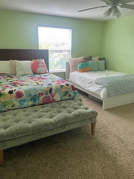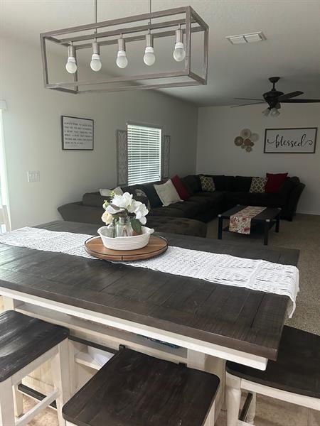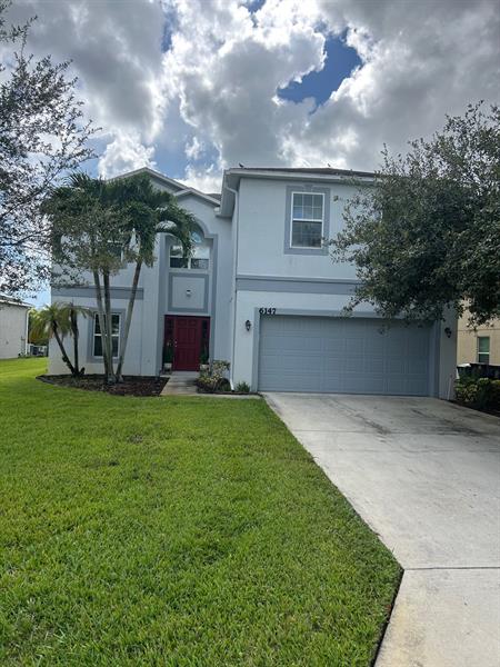 Beautiful, well-kept, single-family WATERFRONT home in WINTERLAKES, PSL, with 2,878 sq. ft. under air. 4 spacious bedrooms, 2 full bathrooms & large Loft upstairs. Ground floor has Foyer, formal Dining/Living Room, Guest Bathroom, large Bonus Room (suitable for playroom/office/or den), Laundry Room, Huge Living/Family Room, Dining area & well-equipped Kitchen with Stainless steel appliances, granite countertops and white cabinets, an Island & 2 generous pantries. Beautiful WATER VIEWS from all 3 secondary bedrooms upstairs & from Kitchen, Dining area & Family room on lower level. Very large, screened back patio where you can relax & enjoy tranquil views of the lake. Hurricane protection. HOA $120/M OR $360/Q