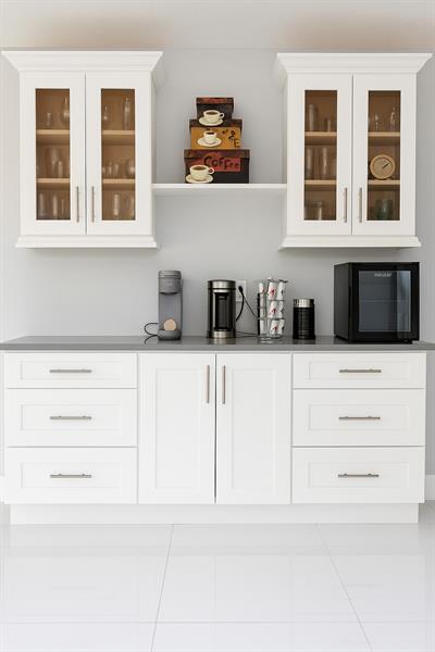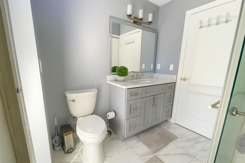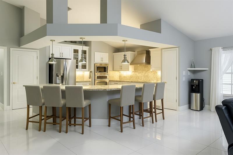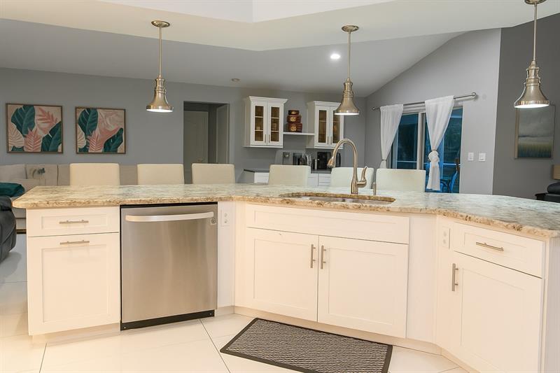 Beautifully updated home with an open-concept layout and modern finishes. The kitchen features white shaker cabinets, granite countertops, stainless steel appliances, and a large island with seating—perfect for entertaining. Enjoy vaulted ceilings, recessed lighting, and glossy porcelain tile floors throughout. The living area includes a custom stone accent wall with a built-in media space. Bright and airy with a neutral palette, this home blends comfort and style. Conveniently located near beaches, shopping, and dining. Den can be used as a 4th bedroom!