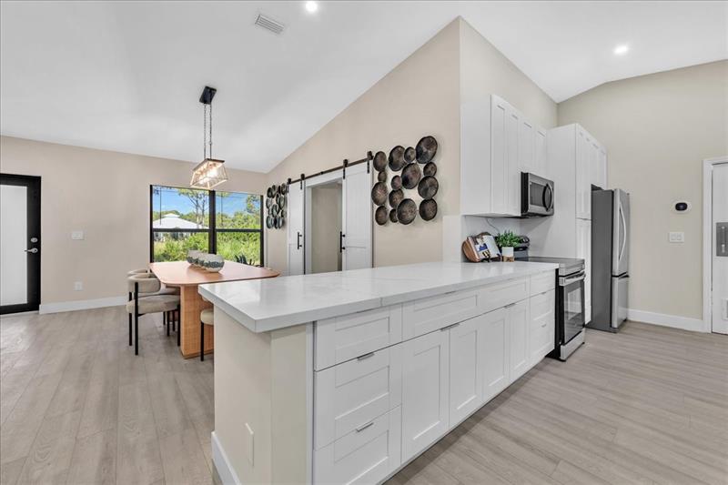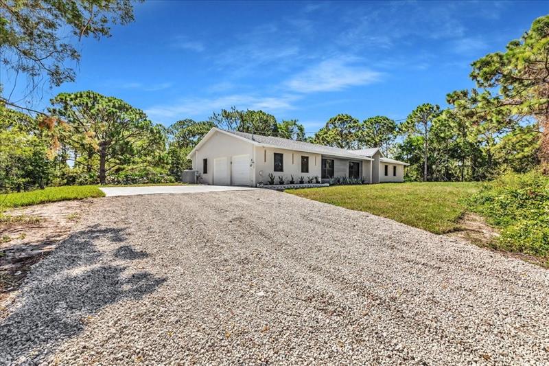 Unbelievable and unique opportunity to own 2.5 acres east of US1 in South Florida, with a completely remodeled & upgraded large, open and bright 5 bedroom 3 bathroom home w/ oversized garage. Home upgrades were all done with PERMITS. Everything is BRAND NEW, including ROOF, IMPACT windows and doors, a spacious modern chef's kitchen with European cabinets, calacatta counters/backsplash, SS appliances, slatted wood accent wall w/ electric fireplace, oversized master bedroom with his and hers closets, maid/in-law quarters on the opposite side of the house, breakfast nook, large laundry/pantry room, and so much more.... Land is cleared around the property and the rest is ready for your imagination: ATV trails, fishing in the pond, add some horses... or garages...