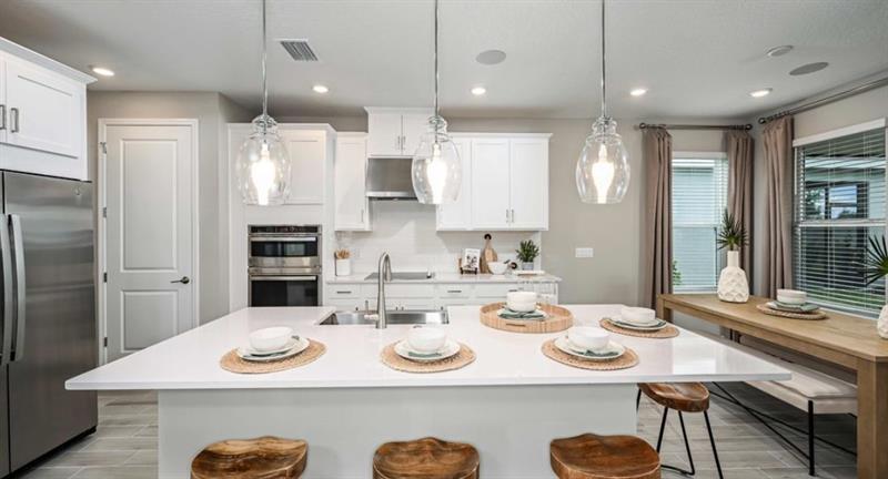 New Construction – April Completion! Built by America’s Most Trusted Homebuilder. Welcome to the Bahama at 9322 SW Lorenzo Way in Central Park. The main level brings together the kitchen, dining area, and great room under soaring ceilings. The gourmet kitchen features a large island, walk-in pantry, and easy access to the formal dining room. The downstairs primary suite offers a spacious bedroom, walkin closet, and a luxurious bath with dual sinks, garden tub, separate shower, and private water closet. A sunny lanai spans the back of the home. Upstairs, a loft leads to a quiet study and three bedrooms-one with a private bath, and two that share a full bathroom. Additional Highlights Include: Gourmet kitchen and deluxe primary bath. Photos are for representative purposes only. MLS#F10534315