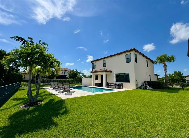 New Price to Sell !!! Two-story lakefront home in BellaSera, 2,385 Sqft., 5 bedrooms, 3 full baths. Four upstairs bedrooms include a master suite with lake views. Custom heated luxury pool with integrated spa and furnished poolside lounge. Sold fully furnished with high-end furniture and appliances (including 85†and 75†Sony TVs). Open-concept design maximizes natural light and flow. Two-car garage. Resort-style community amenities: clubhouse, heated pool, fitness center, sports courts, and 24-hour security. Prime location near top schools, medical centers, shopping, and entertainment.