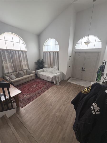 Highly Sought-After Madison Green Gated Community. This 4-bedroom, 3-bath home with a 2-car garage offers stunning garden and pond views. Step inside to discover soaring vaulted ceilings, a charming bay window, tile & wood flooring throughout, and a spacious master suite with walk-in closets. The fenced backyard has plenty of room to add a pool, and the home is equipped with exterior shutters for added protection.