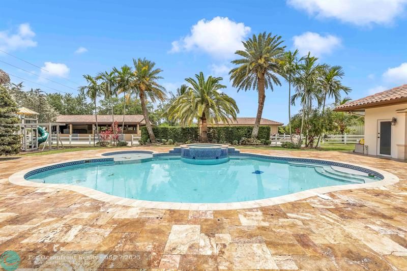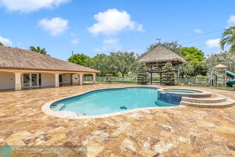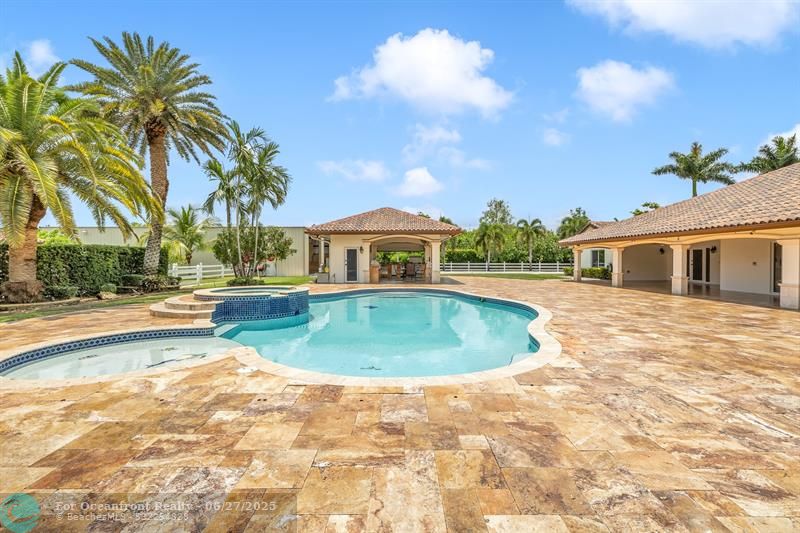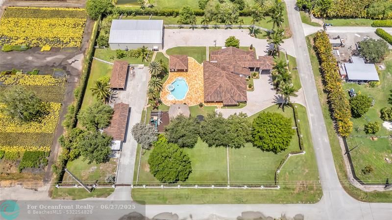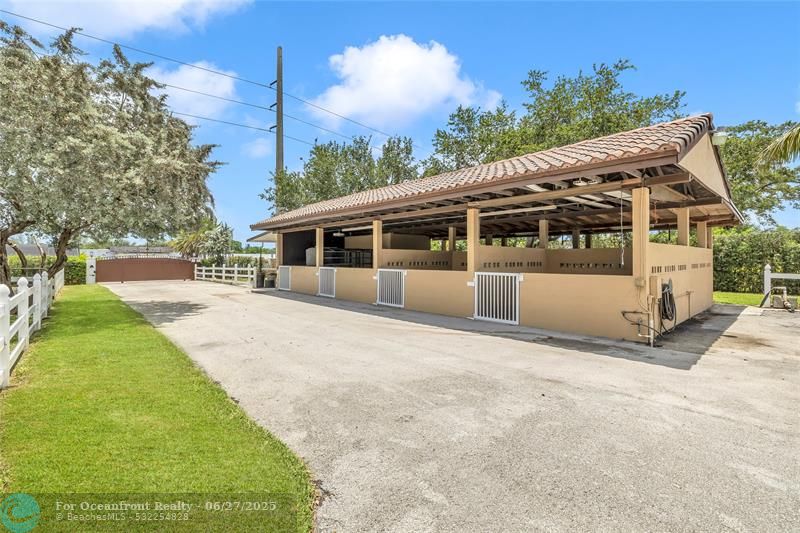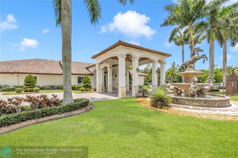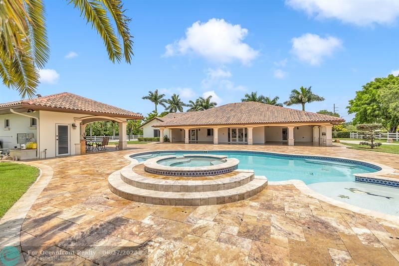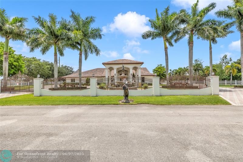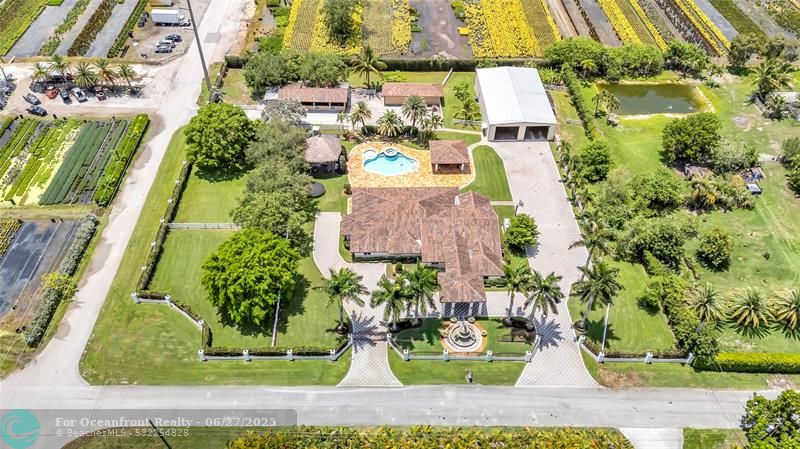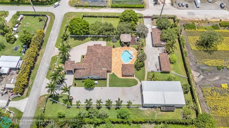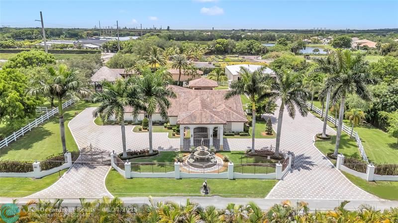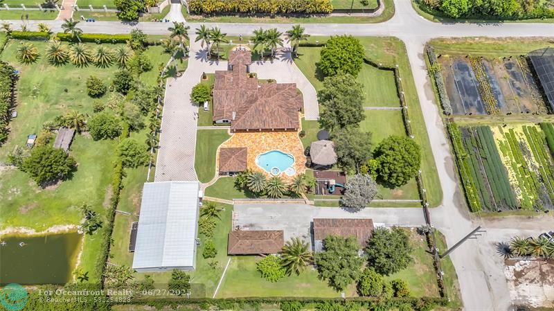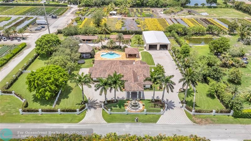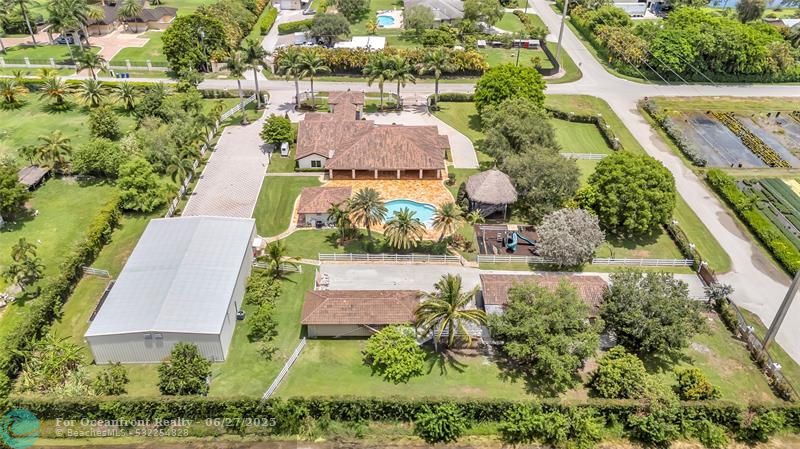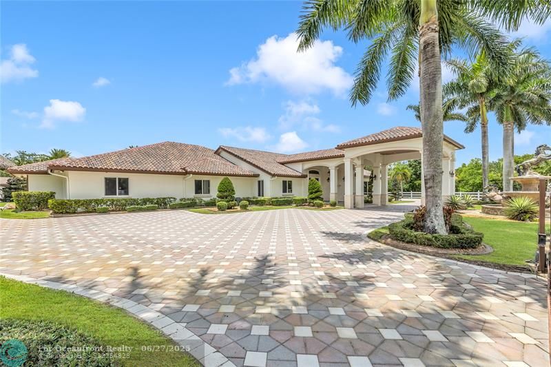Welcome to this ultra-luxury estate in prestigious Southwest Ranches, set on 2.03 meticulously maintained acres. Fully renovated with no expense spared, this exceptional property is a true masterpiece. The estate includes 8 horse stables & a separate 4,000 sqft garage featuring a private upstairs office with A/C, ideal for conversion into a guest house and another 1,000 sqft garage/storage area. The main residence spans 4,000 sq ft under air and showcases 5 bedrooms, 4 bathrooms, impact windows, a redesigned private gated driveway, and a laundry/utility/mudroom for added functionality. Step outside to your private resort-style oasis, complete with a large pool, Brazilian teak wood ceilings, a summer kitchen, a pool house, and a stunning two-story tiki hut with electric and lighting.