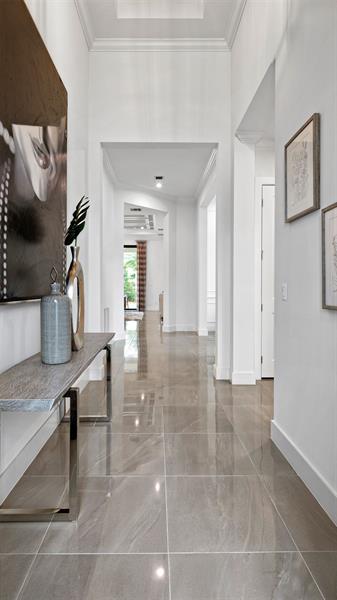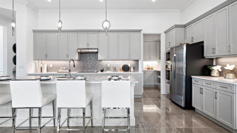 Discover The Cove at Park Trace in Stuart, FL—a gated new home community with a pool, sundeck, shaded lanai, and on-site restrooms. Enjoy access to beaches, golf, shopping, dining, and top-rated schools. Minutes from Downtown Stuart, Jensen Beach, and Palm City for vibrant Florida living. The Kitchen serves as the command center of the Julia floorplan. A gourmet kitchen with substantial countertop area, cabinetry and pantry. From the island, the view opens up light & bright across the Dining area and Great Room out to the covered Lanai. Owner's Suite highlights include a tray ceiling, spacious walk-in closet and separate vanities in the Owner’s Bath. Disclaimer: Photos of a decorated model home are for reference only. Actual home will differ.