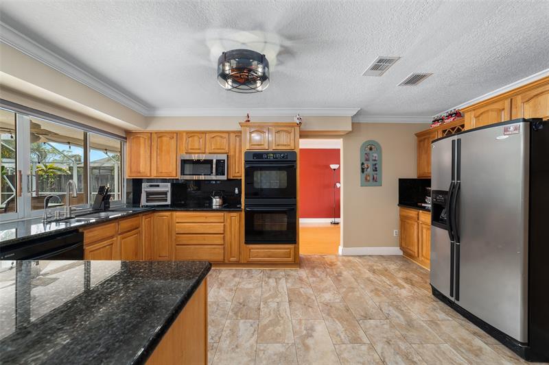 Rare spacious ranch-style home in Sunrise Golf Village offering 5 bedrooms and 2 bathrooms, thoughtfully laid out for everyday comfort and easy living. Wood flooring flows through the main living areas, while tile floors add durability in the bedrooms. The oversized kitchen provides generous counter space and storage, making it a natural gathering spot. Head outside to a screened-in pool, ideal for relaxing or entertaining year-round, all within a fully fenced yard that offers privacy and room to enjoy the outdoors. A two-car garage adds convenience, and the location places you close to local shopping, dining, and major highways for easy commuting. This well-rounded property combines space, functionality, and a setting that supports a comfortable Florida lifestyle.