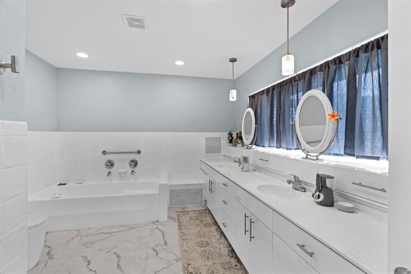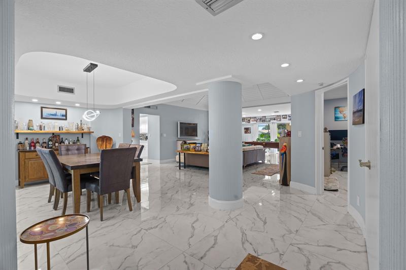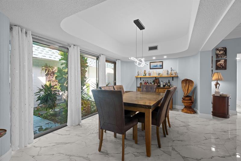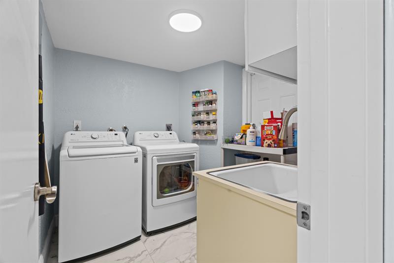 Welcome to your dream home in the prestigious WOODLANDS COMMUNITY! This remodeled 3/2 residence offers over 2,400 sq ft of luxurious living space on a spacious 0.28-acre lot. From the moment you arrive, you'll be captivated by the modern finishes, split floor plan, and rare 4-car garage—perfect for car enthusiasts or extra storage. Step inside to discover gleaming 24x24 MARBLE TILE FLOORS, WHITE SHAKER CABINETRY, and QUARTZ COUNTERTOPS throughout. The CHEF'S KITCHEN features stainless steel appliances and a breakfast nook. The expansive great room flows seamlessly into a game room and formal dining area, creating a versatile space for gatherings. Enjoy peace of mind with a 2019 ROOF, updated electric, Wi-Fi smart home setup and 2 zone a/c. The screened lanai offers a tranquil retreat.