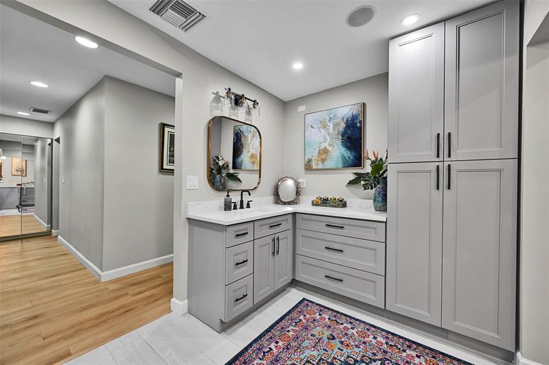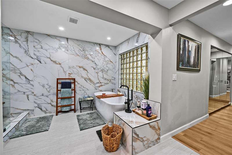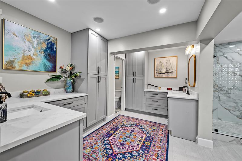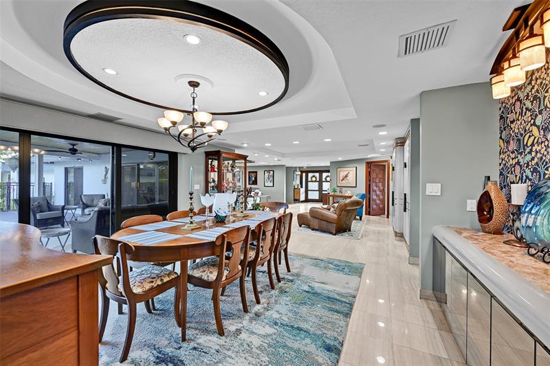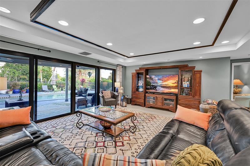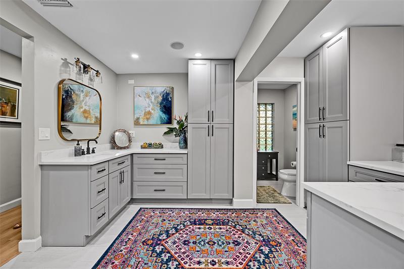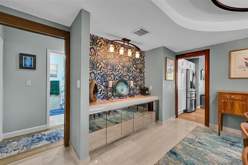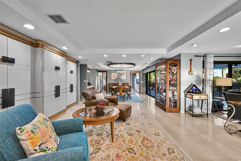 This pristine mid-century 3-bedroom, 2.5-bath home blends timeless style with modern luxury. Impact doors and windows ensure superior protection and excellent insurance rates, while natural light highlights the home’s refined craftsmanship. The renovated chef’s kitchen features upgraded cabinetry and newer high-end appliances. The spa-inspired primary bath suite is beautifully updated and designed for total relaxation. Expansive windows frame rolling green hills, creating seamless indoor-outdoor living. Outside, enjoy a sparkling saltwater pool and upgraded patio, perfect for peaceful retreats or elegant entertaining. A rare blend of mid-century charm and modern luxury—this home is truly turnkey and unforgettable.