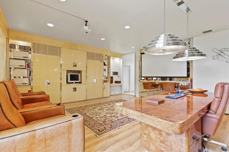 NO MANDATORY HOA FEES!!! Over 7,100 sq. ft adj. of style, comfort, and space! This light-filled mid-century modern home is perfect for large families or anyone who loves to entertain. Inside, you’ll find 5 bedrooms with a guest house plus an additional bonus room, 4.5 bathrooms, an executive office, a full bar, and a 3.5-car garage with a huge circular driveway. The open layout, upscale finishes, and architectural details earned it a feature on the cover of Palm Beach Magazine.