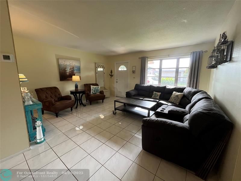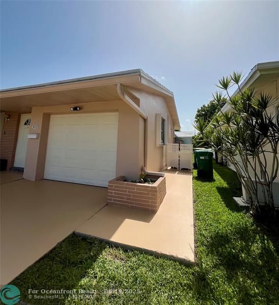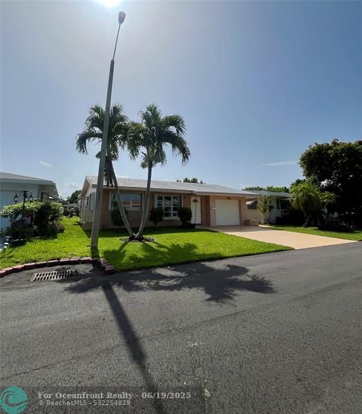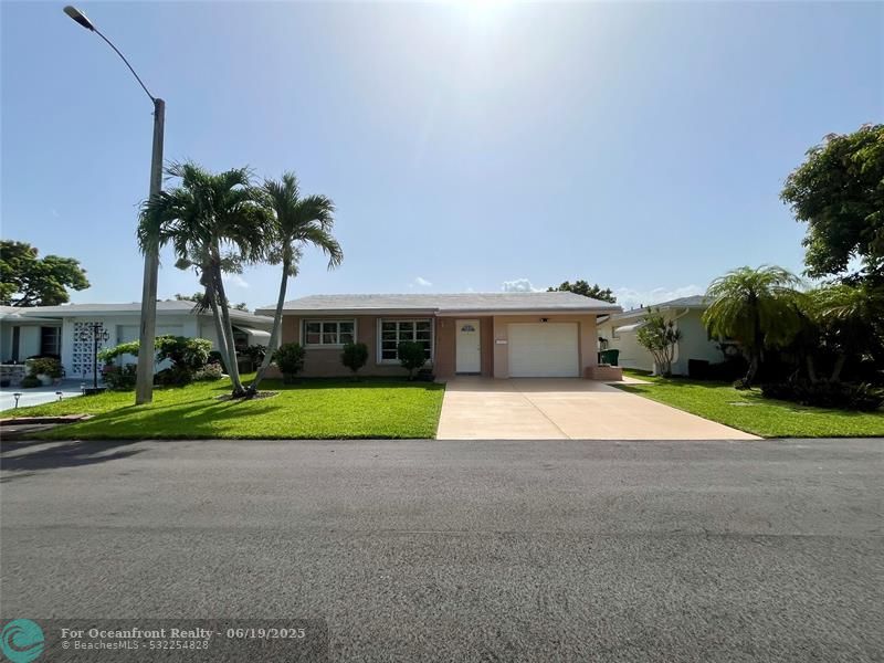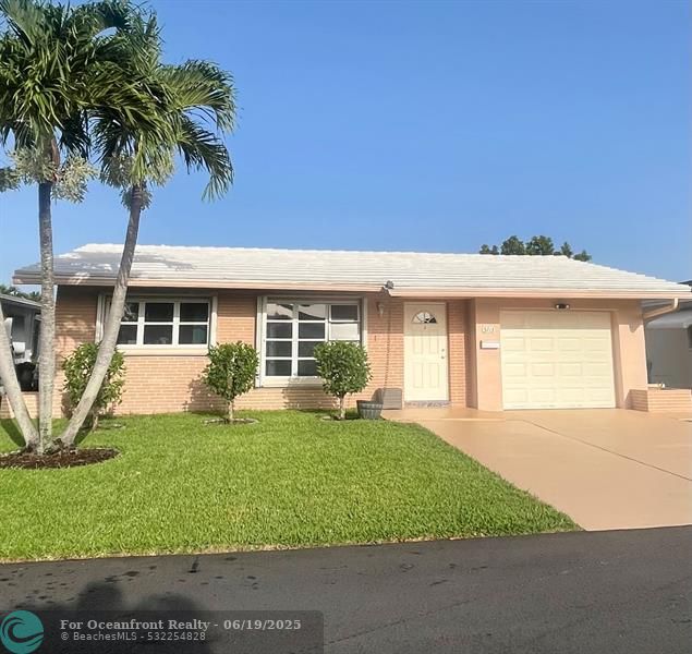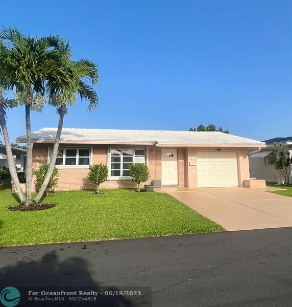Two bedroom one bath concrete block home with bonus room that can be used as a bedroom. Total of 1382 sq. ft. under roof, including 1-car garage with hurricane rated automatic door. This home has a concrete tile roof and double wide driveway. Recent updates include a new high energy-efficient HVAC system w/ UV light (2022), electric service panel (2022), and appliances including dishwasher (2024), stove (2024) and microwave (2024). Newer exterior and interior doors and windows with tinted security laminate and accordion hurricane shutters. Located in a quiet, well-kept 55+ community with a clubhouse and pool. FHA and VA programs are being accepted. At least one occupant must be 55+. Make this house your home - call today to schedule a viewing!
