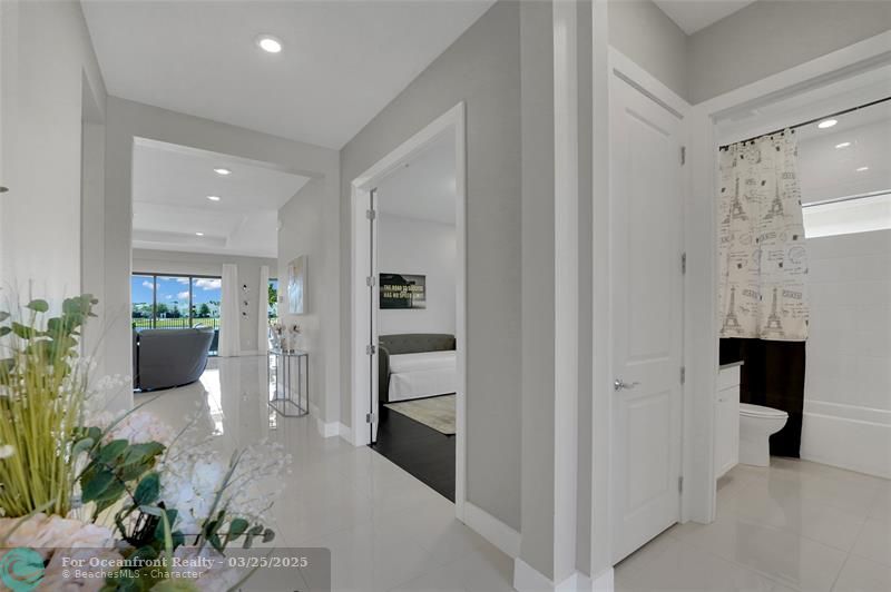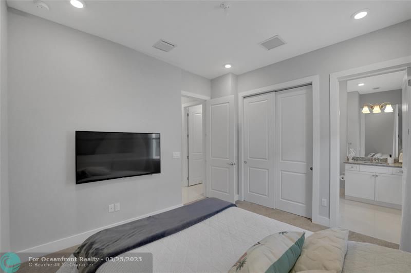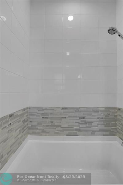 Tile and mirrors in the bathrooms all the way to the ceiling, vanities with quartz countertops, a deep soaker tub in one of the bathrooms, High-end washer and dryer,
