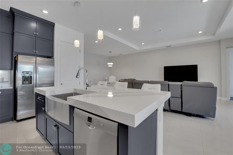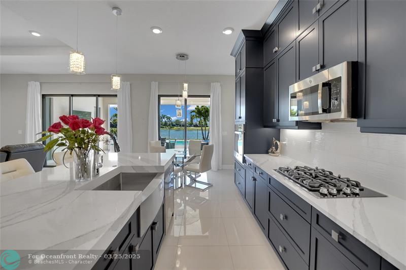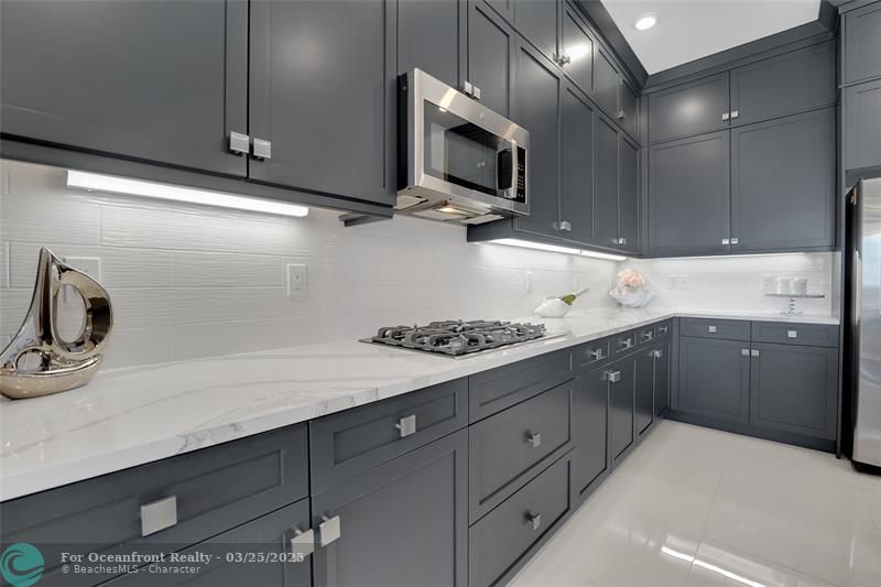 Kitchen cabinets all the way to the ceiling, with upgraded backsplashes, Cambria island countertop, 3-inch sides all around, Gas cooktop, High-end dishwasher (purchased in 2023),