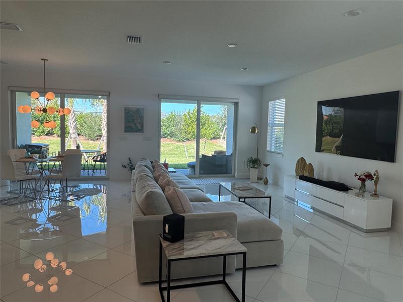 Newly Constructed in Costa Pointe Subdivision Mostly Furnished! LESS THAN 7 minutes to the beach and to downtown! 10 yr Home Warranty. Not in a Flood Zone! Modern coastal home with tons of designer upgrades! Great Room, Foyer, Café, & Front Porch Furnishings Included! Mystique Model with Great Room Expansion 3 bed/2 bath + Den/4th bedroom, 2 Car Garage w/4ft garage extension. Open floorplan, Gourmet Kitchen, Gas Appliances, Tankless Hot Water, Soaking Tub, Pool Pre-Wire, Window Treatments. HOA 374 mo Includes: Resort style swimming pool with sun-shelf & veranda with cabanas. 2 lighted pickleball courts, corn hole and BBQ Grills Clubhouse with catering kitchen for entertaining Large fitness cen ter, Lawn maintenance and AT&T High Speed Internet included so you can relax by pool.