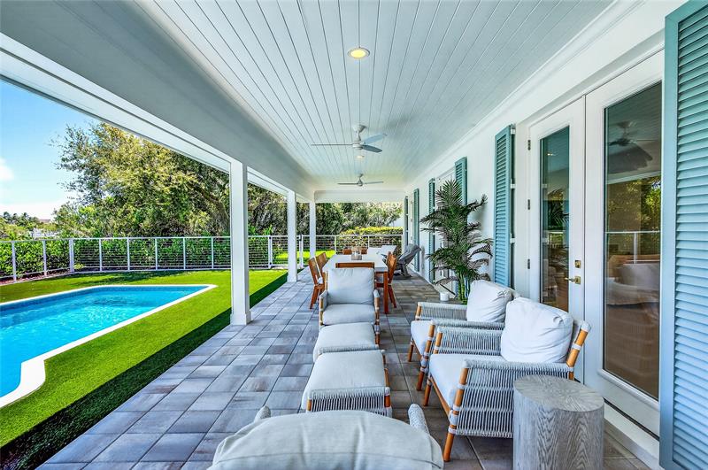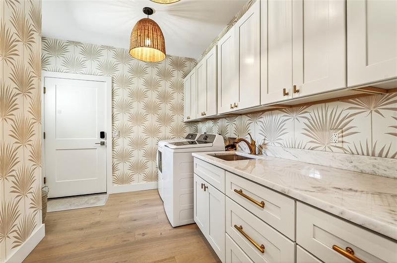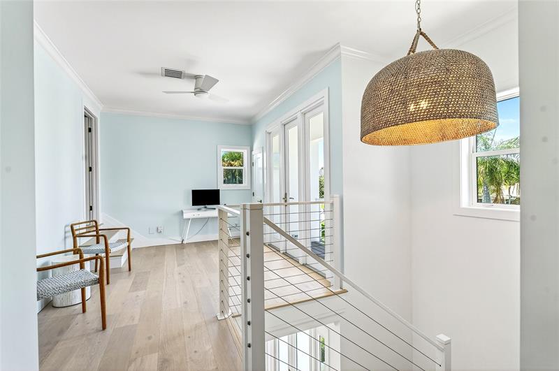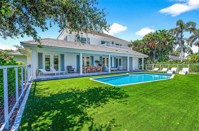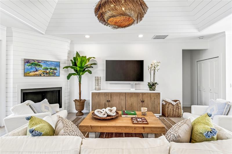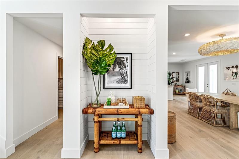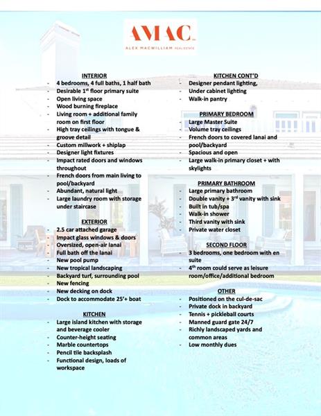 Stunning riverfront home completely reimagined with designer finishes. Relaxed coastal living with refined island-inspired style. Crisp white architectural lines, fresh coastal hues, open-concept light-filled interiors, natural textures, white oak flooring, custom lighting and millwork, elevated yet laid-back feel throughout every room. Multiple living spaces, large island kitchen, indoor/outdoor dining, 1st floor primary suite overlooking the pool, walk-in closets, option for 5th bedroom, all impact glass, new tropical landscaping, whole house water softening system, oversized 2car garage.