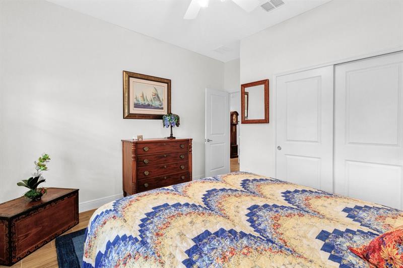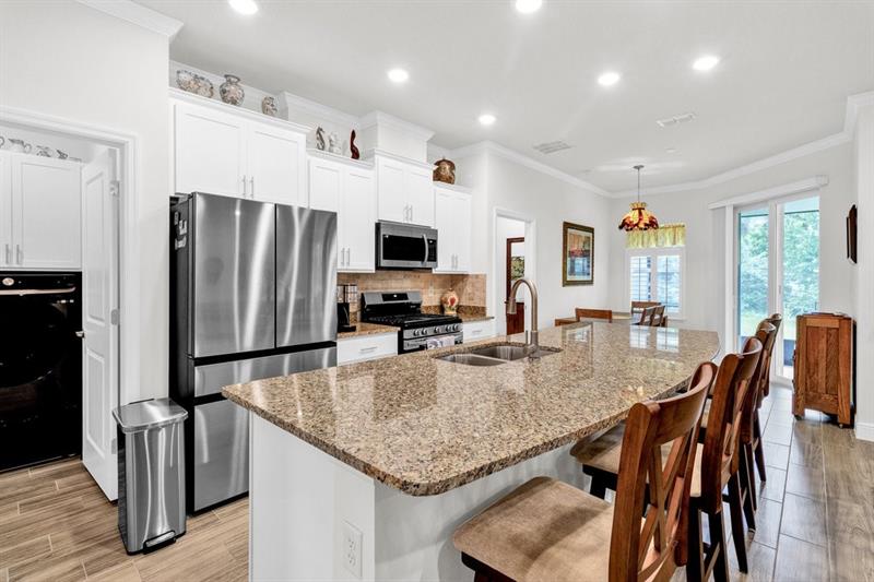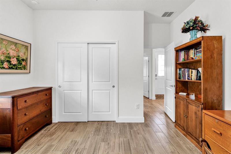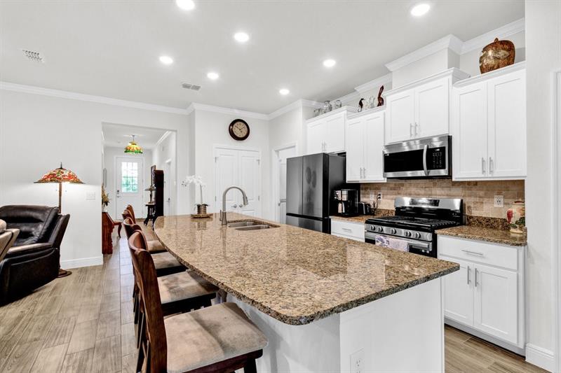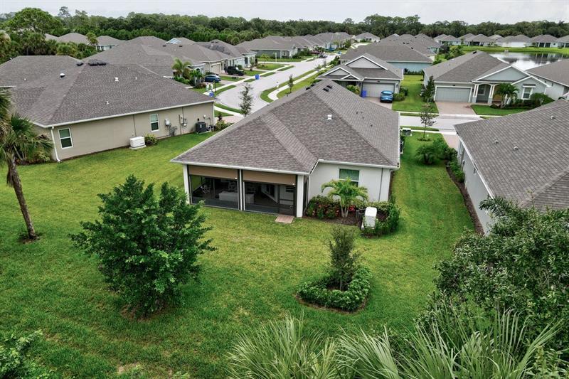 Discover Harmony Reserve, a sought-after 55+ community offering resort-style amenities. Tour this 3-bed / 2-bath home, with a GREAT lot, thoughtfully designed for style & function. The interior features tile floors, crown, plantation shutters & impact windows + tankless WH & irrigation system. The island kitchen features upgraded Samsung appliances, a spacious pantry, gas cooking & beautiful tile backsplash. Enjoy privacy & serene views on the covered screened lanai enhanced with hurricane storm screens for year-round protection. The 2-car garage offers a custom-built, large AC’d storage closet.