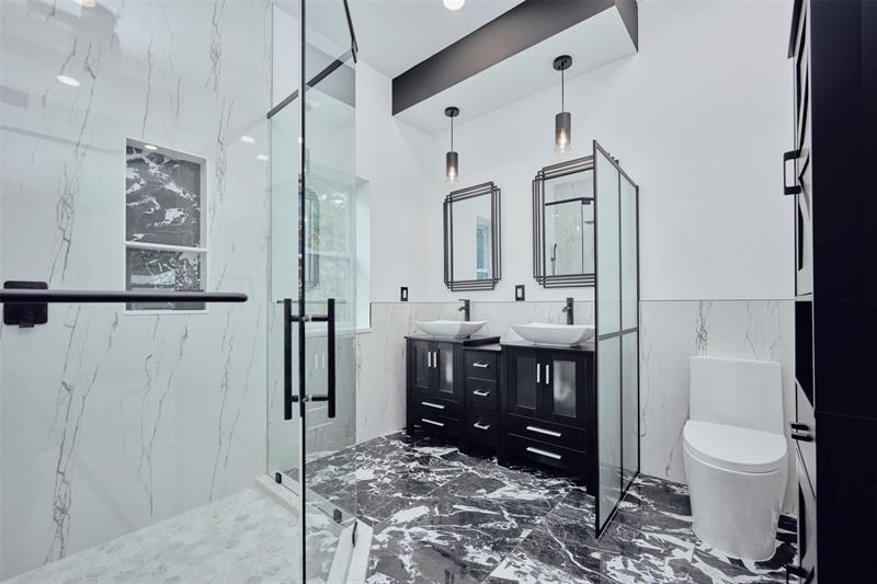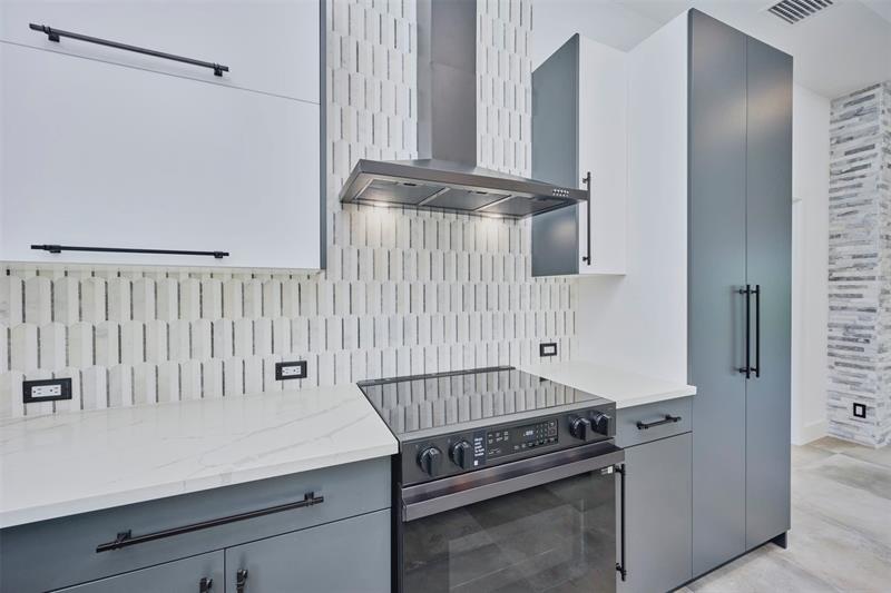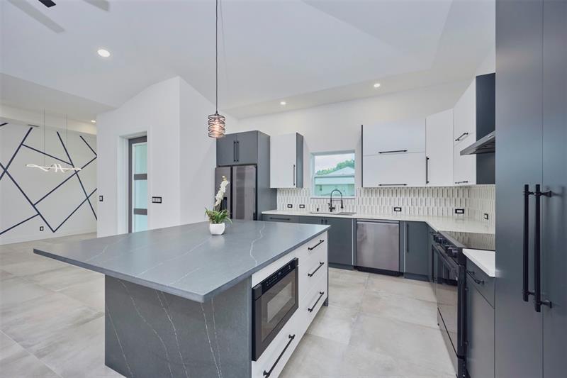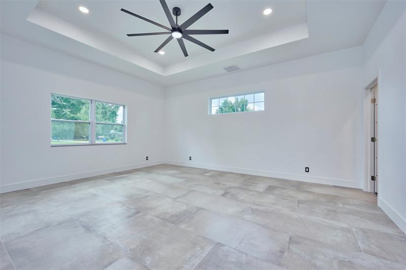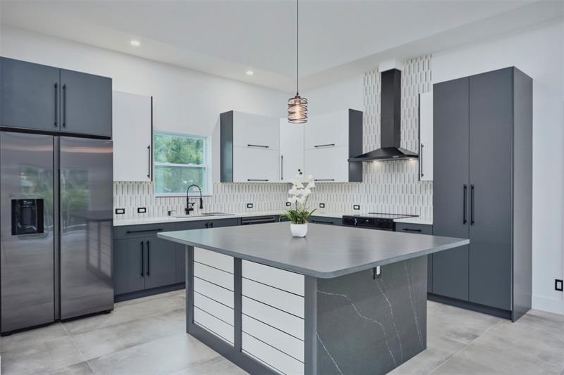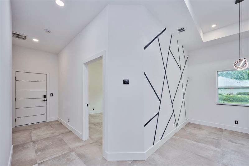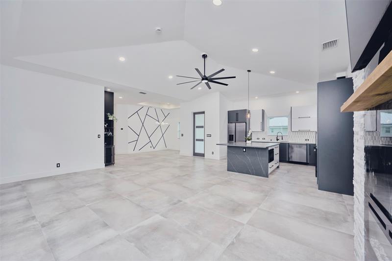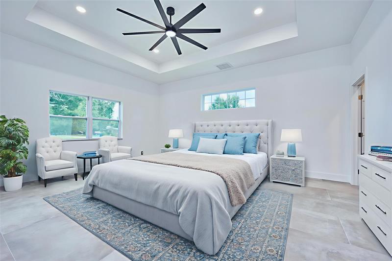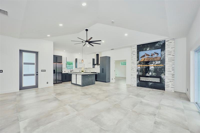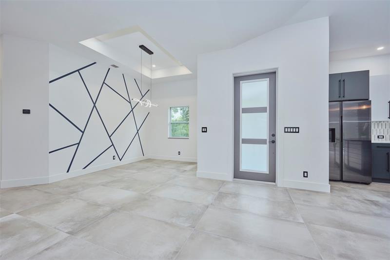Custom built modern style 3 bedroom, 2 bath home on a corner lot. Open-concept layout that seamlessly blends style and functionality. Soaring vaulted ceilings, sleek marble floor and high end finishes throughout. Designed with smart home technology, functional elegance, and striking appeal, including dramatic tray ceilings for a truly sophisticated living experience. Designer-selected finishes throughout elevate the space. No HOA/no restrictions. Photos are virtually staged.