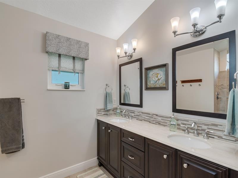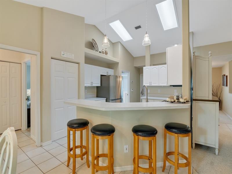 This impeccable 3 bed, 2 bath home on a lush .37-acre lot, boasting fresh modern upgrades-stainless appliances, impact windows with plantation shutters, separate spacious laundry room, vaulted ceilings & an airy open layout perfect for entertaining. Primary suite with updated bath, walk-in closet. Screened lanai, south-facing, fenced in backyard, perfect for future pool! Double wide driveway, 2 car garage. Updated include: roof ('22), re-piped ('22), impact windows ('15), fence ('22), Low HOA fees, close to beaches, shopping & parks. Spotless, move-in ready, your forever home awaits!