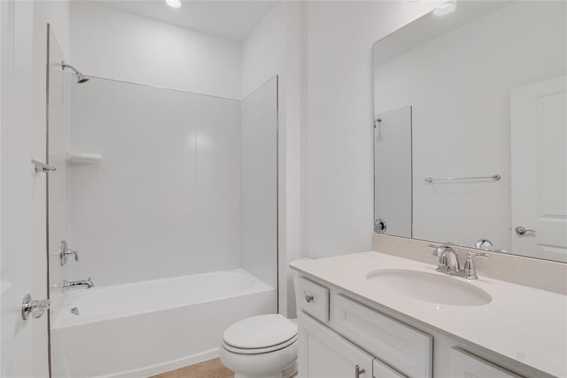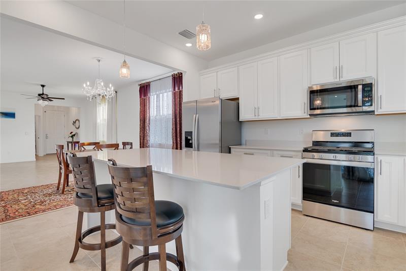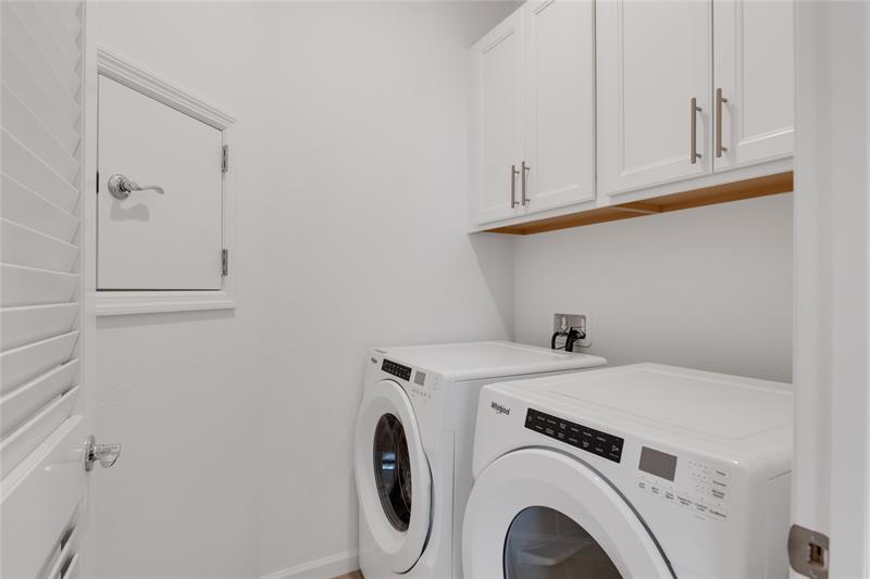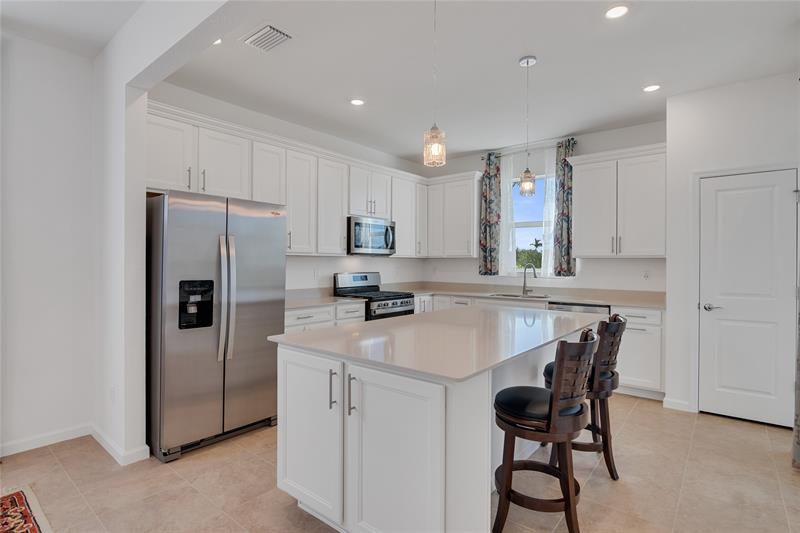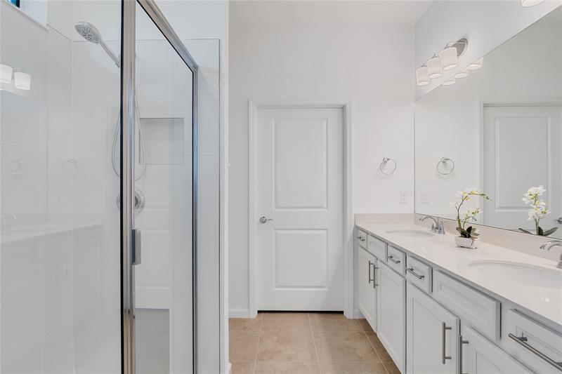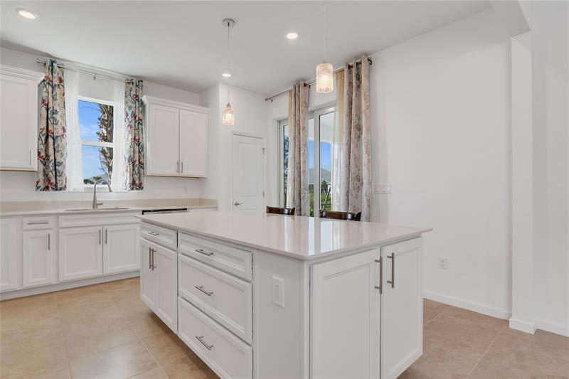 The Compass, built in 2024, offers an open floor plan with serene lake views. Custom upgrades include tile throughout, a chef’s kitchen with pull-out drawers, soft-close 42" cabinets, and a gas range, plus a laundry room with front-load washer/dryer and additional cabinetry.