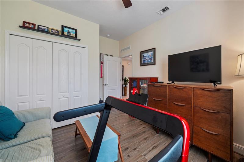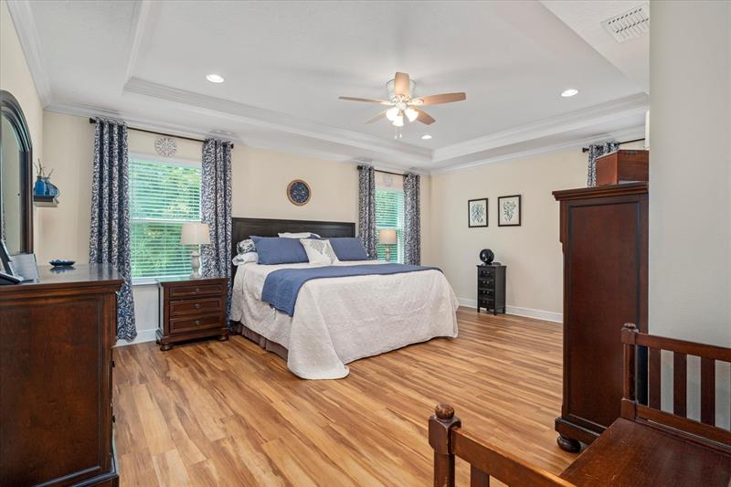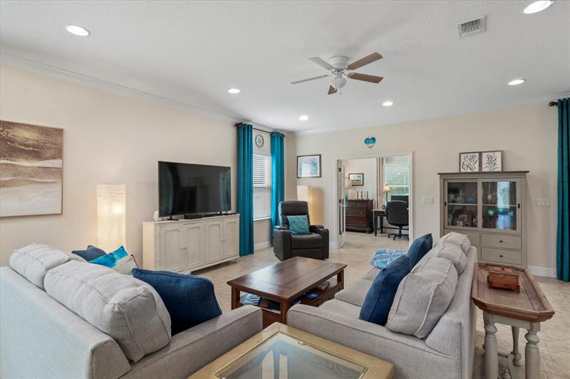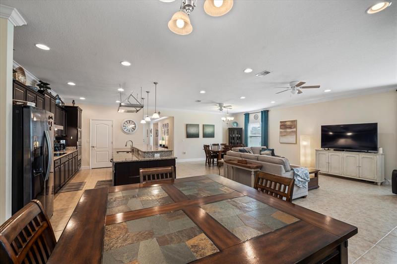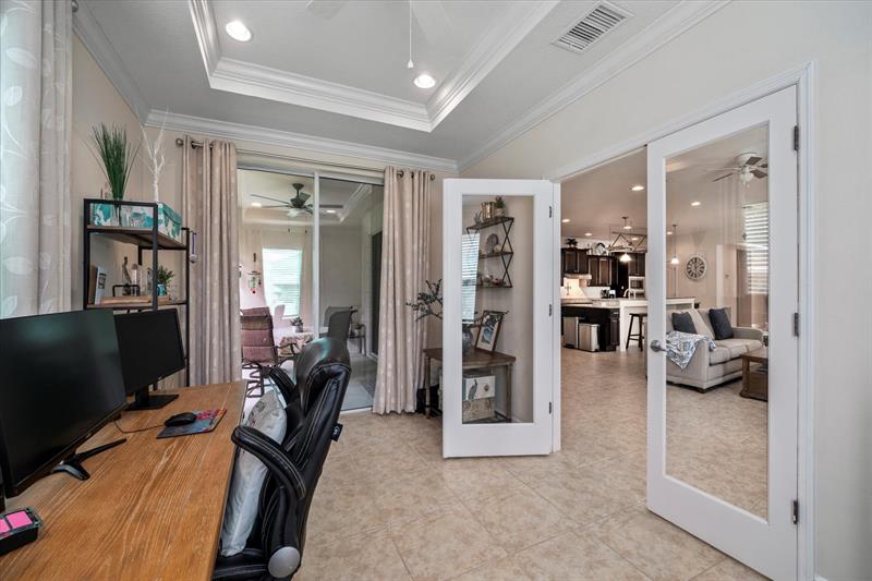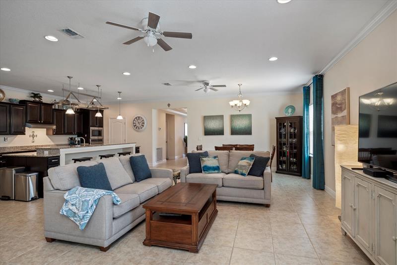 Now selling in Ashley Lakes!! Secure, gated community with super low HOA! Offers four bedrooms PLUS den/office, three baths, and expansive THREE-car garage! Designed with triple split floorplan, each bedroom enjoys enhanced privacy. Wide foyer opens to inviting living area, complemented by large laundry room and a versatile sunroom/office. Multiple dining options incl formal dining, bfast nook, extensive bar seating. Open kitchen boasts spacious pantry, stainless appliances, and generous wood cabinetry. Recessed lighting, ceiling fans, screened back patio! With low HOA fees and no association appvl req, this modern 2014-built home presents an outstanding opportunity!