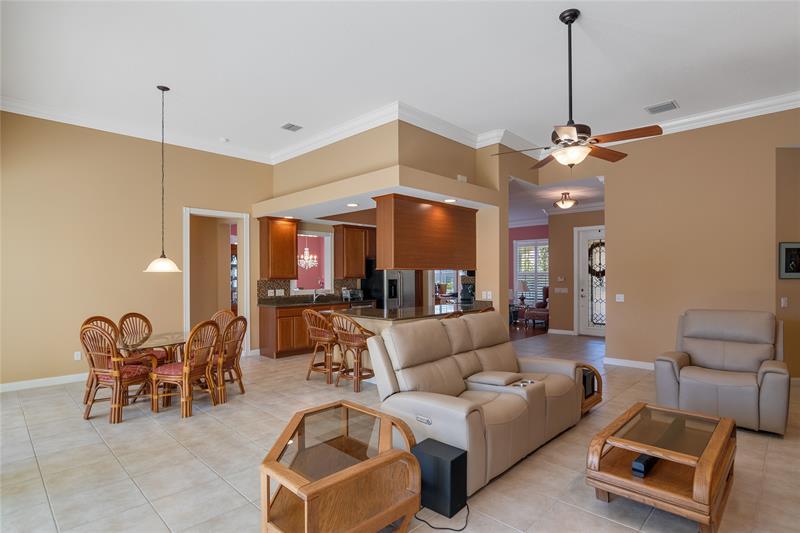 Oh so private! The Carlyle is on a cul-de-sac. 4 Bedroom 3 bath with a phenomenal Primary ensuite with his and hers baths. Tile throughout the home, along with crown molding details. Extended patio overlooking the private backyard. Accordion shutters installed for easy hurricane protection. Community offers a clubhouse, fitness center, pool, tennis and pickleball!