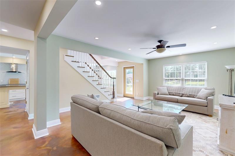 LOCATION LOCATION LOCATION-JUST one house from Riverside park and 8/10 mile to the beach. 2025 roof, IMPACT windows and doors, AC 2022 & WH. Both a screened and unscreened patios with views of a tropical landscaped backyard. Circular driveway with 2 car garage. Recently upgraded kitchen, oversized laundry/utility room. Open flow from kitchen to dining to Living room + breakfast nook. All 4 bedrooms are on the second floor. Home has been replumbed and electrical updates throughout.