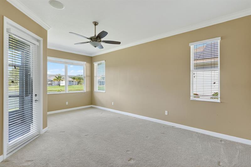 Located in desirable Hammock Lakes, this immaculate lakefront home offers 3 bedrooms, 2 baths, plus a den/4th bedroom. Features a 2024 roof and whole-house solar panels. Inside, enjoy elegant 18" diagonal tile flooring and crown molding. The kitchen boasts wood cabinetry, updated countertops, and top-tier appliances. High volume ceilings and an open, split floor plan with multiple living and dining areas create a spacious feel. Living areas have tile; bedrooms and formal living room are carpeted. The large laundry room includes extra cabinets and a utility sink. Relax on the screened back patio with stunning lake views. The community offers natural gas plus pool, basketball, tennis, and pickleball courts. A must-see home—schedule your tour today!