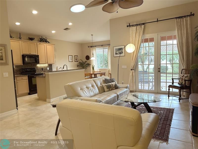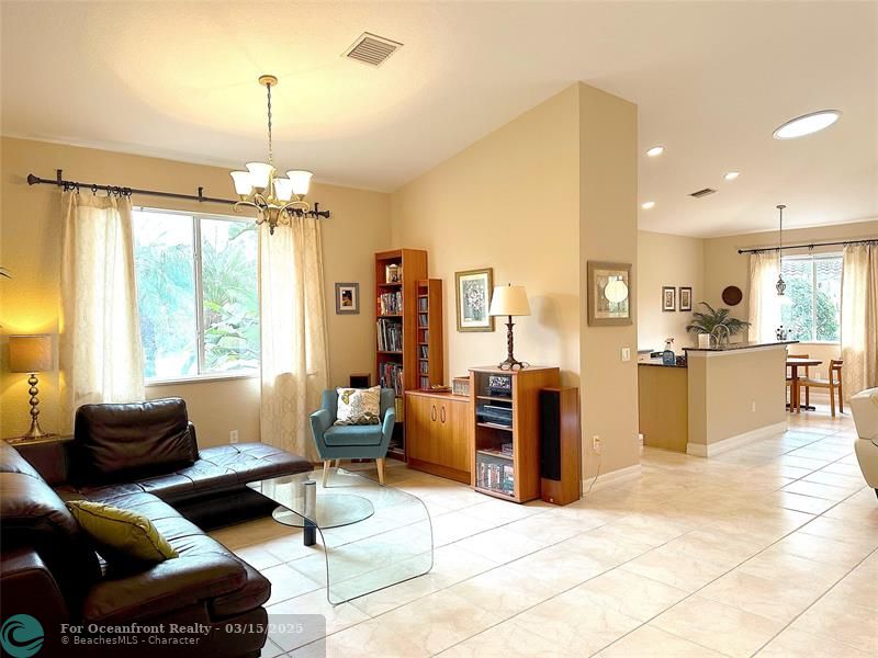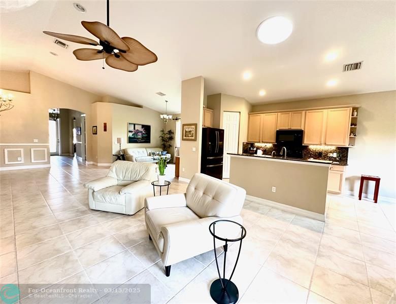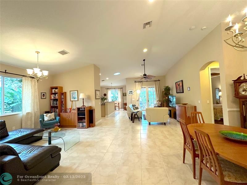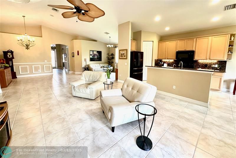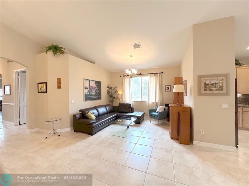 Single family home located in Vero Beach, Florida within the Woodfield Community, an active 55+ neighborhood. Features 2 bedrooms, 2 bathrooms + den. 2006 square feet of living space. The home includes an open-concept layout with porcelain floors in living area, wood-like flooring in bedrooms, vaulted ceilings, master suite with bay window, jacuzzi tub, and separate shower. The kitchen has 42" upper cabinets, granite counter and a breakfast nook. The home also offers a covered screened patio, an extended open patio. 2 car garage. The quarterly fee is $1489 and includes: TV/Internet, alarm monitoring, lawn service, all the amenities the community has to offer. New hotwater heater 2025, A/C 2017. A must see!