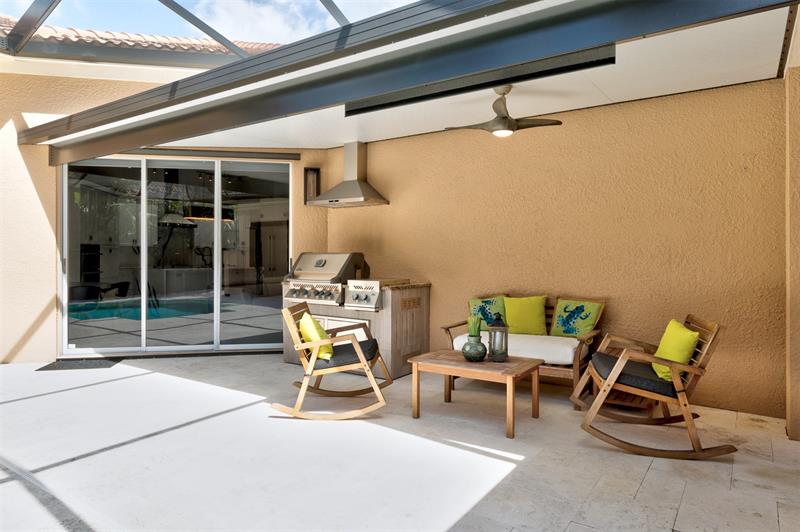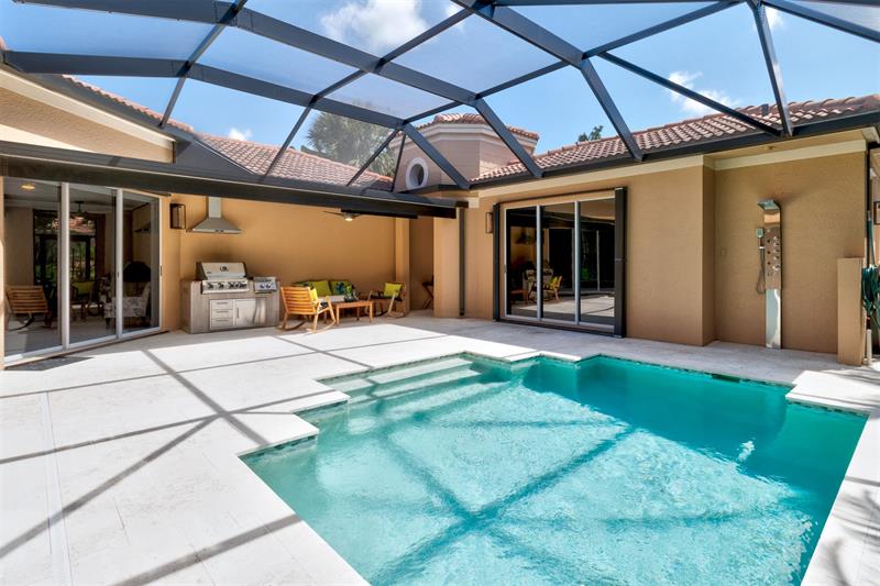 Breathtaking upgrades to this pool home + CASITA! Kitchen is a jaw dropper with STUNNING waterfall Quartz countertops, custom wood cabinetry, 66' fridge,36' cooktop &vented hood. SOLD FURNISHED Primary bathroom is the epitome of luxury with quartz countertops, soaker tub, floor to ceiling tiled multi-jet shower & custom walk in closet. No surface has remained untouched-even the laundry room is worthy of a look. Home was designed for entertaining with built in bbq & vented hood poolside, custom drybar indoors & relaxing lakeside screened back porch. 2023-repiped, ACs, new lighting,paint, molding/casing, 15x30 porcelain tile throughout & so much more. LESS than 1 mile to beach: Neighborhood offers clay tennis, community pool &workout facility. Adjacent to Jungle Trail for riverside walks