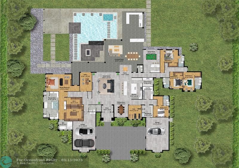 Included is a 45’ x 70’ heated pool with spa, plus a massive 2,206 sq ft covered rear patio perfect for outdoor entertaining.