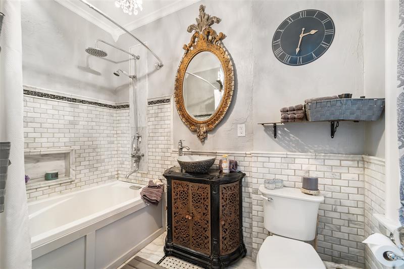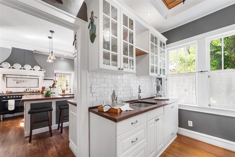 Stunning 1921 property located in one of West Palm Beach’s downtown historic districts, is situated on a walled double lot with only one adjacent neighbor. Fully landscaped garden magnificent deck, outdoor kitchen, dining and entertainment space. There is ample space to add a pool while maintaining 4 parking spaces. Elevated from the garden to form an imposing elegant home with a grand entry staircase.