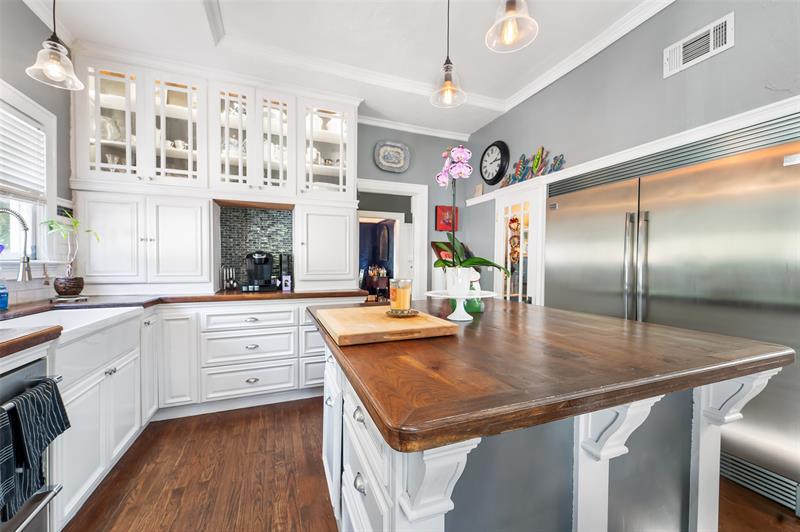 The main floor has several large rooms with ample natural light including a butler’s pantry, gourmet kitchen 48-inch gas range with dual ovens, and a commercial-sized refrigerator. Upstairs is a master ensuite bedroom with walk-in closet, 2 large bedrooms,bathroom, and a full-size office/flex room. Other features include impact glass windows,updated electrical, and brand-new upper floor AC.