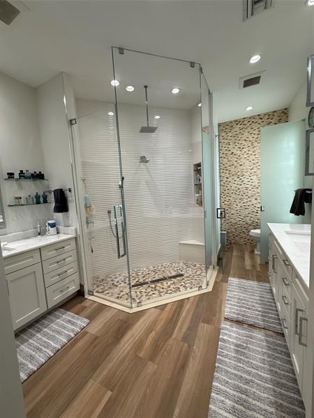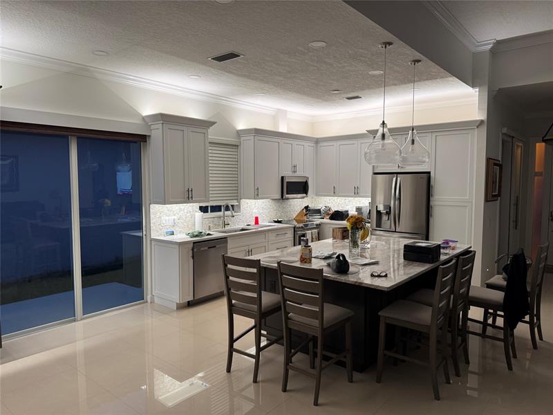 Beautifully Renovated “EXPANDED OAKMONT MODEL†with 3 Bedrooms, 2 Bathrooms Plus a Den. The home offers Renovated Kitchen with Quartz Countertops, Upgraded Kitchen Appliances, NEW ROOF (2019), Expanded Living Area, LVP in Bedrooms and Porcelain Tile in Main Area, Expanded Lakefront Screened-in Patio, Hurricane Impact Main Sliding Doors, Accordion Shutters throughout the rest of the home. Fully Renovated Master Bedroom and Bathroom with 2 separate toilets (his & Hers), new Wood Cabinets and Quartz Countertops, Finished Walk-In Closet plus 2 additional Closets. Renovated Secondary Bathroom with new Wood Cabinets and Lighted Quartz Countertop. Recessed Exterior Lighting throughout the home. Spa Stays with the house. THIS QUALITY DIVOSTA HOME WAS BUILT WITH ''STORM SMART'' POURED CONCRETE.