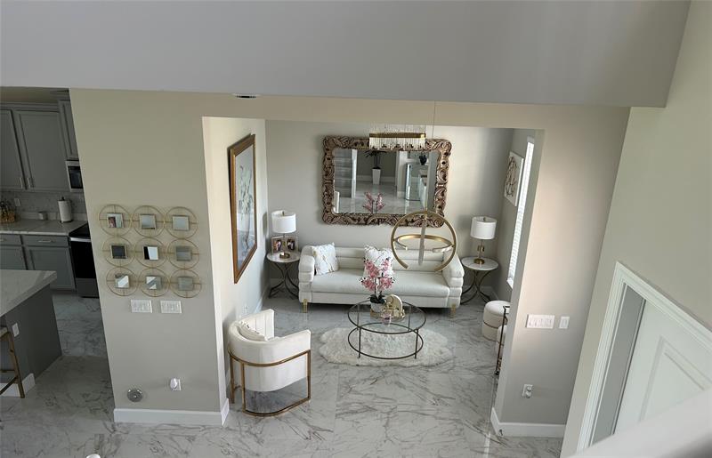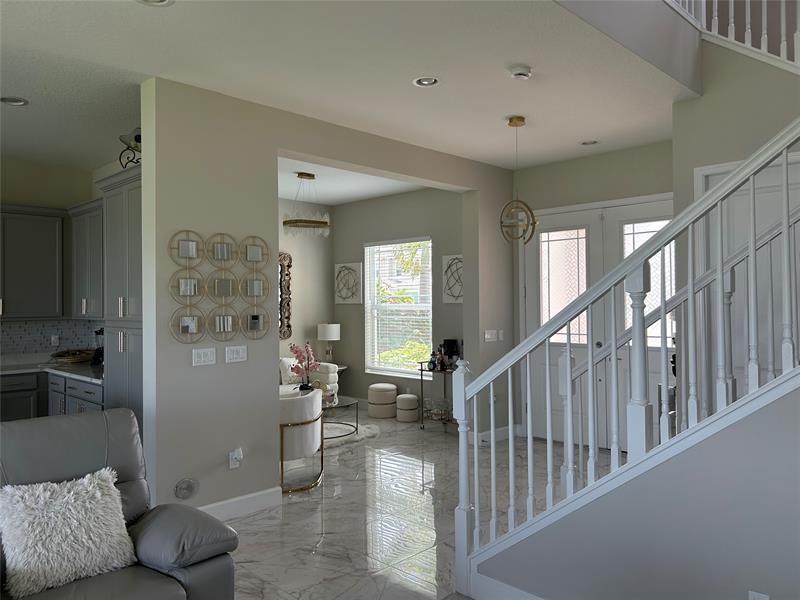 inviting family room. The entire first floor showcases polished upgraded flooring, including the downstairs