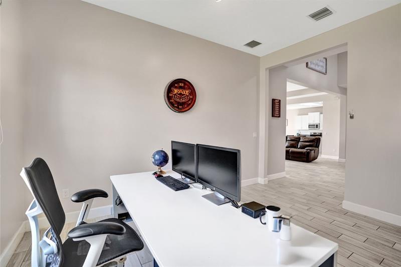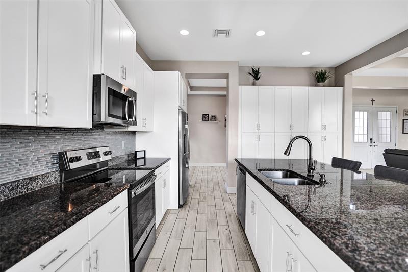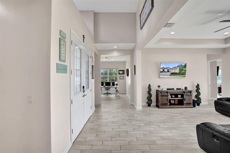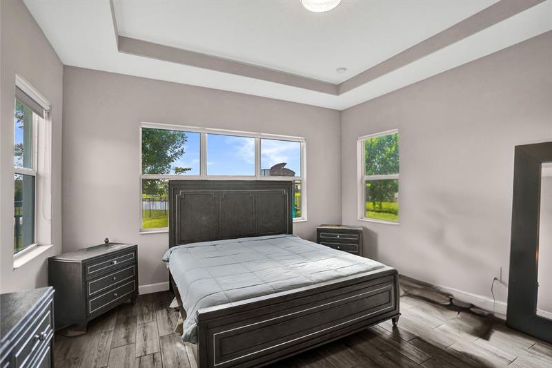 Welcome To The Best Priced Home In The Hammocks On Over 1/4 Acre Pie Lot! This Isn't Your Typical Builder Grade Home, w/ Optimum Features Such As Premium Tile Flooring, Extended Kitchen Island & Custom Window Shades Its Just The Beginning! Step Inside This Triple Split Beauty & You'll Enjoy A Stunning Sightline Through The 3 Panel Pocket Sliders Of Sparkling Lake Views! Abundance Of Premium Kitchen Cabinets & Island w/ Seating For 10! Bonus Flex Rm/ Den Is Easily 4th Bedrm. Guest Wing Complete w/ EnSuite & Walk-In Closet. Spacious Primary Suite w/ More Water Views, Spa-Like Bath w/ Dual Sinks, Massive Shower & TWO Walk-In Closets. Newer Paint. Reallink Security Sys. Smarts Fans & Garage Doors. Exterior Smart Lighting. Floor Attic Space w/ Lighting For Bonus Storage. 3.25% VA Assumable