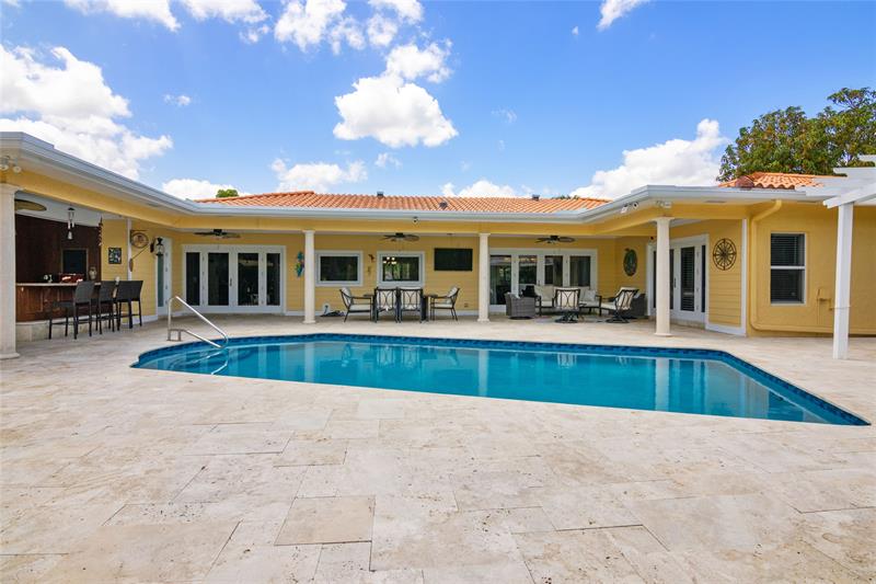 Key West-style smart home on ½-acre in the heart of Weston! Fully updated 4BD/3BA + office with impact glass and impact doors, marble & wood floors. Home has been completely remodeled. Chef’s dream kitchen features oversized island, farmhouse sink, granite counters, SS appliances & custom wood cabinetry. Double dishwashers for entertaining. Big picture windows overlook your private backyard oasis. Master bedroom has spa bath w/ jacuzzi tub, body-spray shower & rain head. Enjoy true indoor-outdoor living: many extended covered patios, summer kitchen, completely remodeled pool, batting cage, workshop, & rec space. Front porch faces peaceful cul-de-sac. Zoned for A+ schools! HOA only $470/yr—includes pool, tennis, pickleball, gym, skating, bowling, parks & more. Garage door is impact rated.