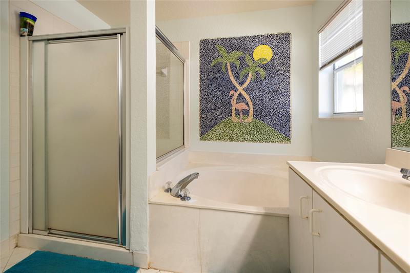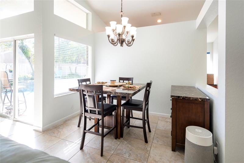 Welcome to The Lakes, a centrally located, gated, family community in the heart of Weston. This enticing 3 bedroom, 2 bathroom single family home with a 2 car garage features a fully fenced-in and very private yard with a beautiful free form heated swimming pool with waterfall and spa. Large pool patio-excellent for entertaining. Home includes fresh neutral paint throughout, new flooring in all the bedrooms, and a remodelled kitchen with wood cabinetry, granite countertops & stainless steel appliances. Master bedroom has volume ceilings, walk-in closet with built-in cabinetry, double sinks, separate shower & roman tub plus private WC. Large great room social areas overlooking pool area. Social areas are tiled and feature volume ceilings. Roof (2022), A/C (2024), New plumbing (2024-25)!