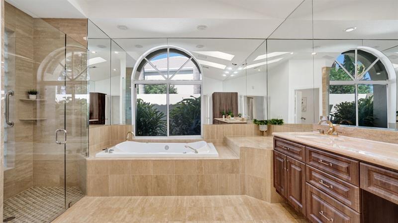 Nestled on one of the most coveted PANORAMIC PREMIUM GOLF & LAKE lots in all of Weston Hills, this magnificent home sits on a cul-de-sac in the exclusive boutique enclave of The Fairways. A long paver driveway, flanked by high privacy hedges, leads to 3600SF of timeless elegance with soaring 20-foot ceilings & breathtaking wraparound views of the TOUR COURSE through floor-to-ceiling glass walls that seamlessly connect the grand interior to the stunning surroundings. Primary & custom den downstairs; upstairs, 2BD w/bath. Exquisite chandeliers, custom mirrors, solid hardwood flooring, plantation shutters, double-sided fireplace. NEW UPDATES incl BRAND NEW IMPACT sliding glass doors & plank floors (Fall 2025), 2024 tankless WH, 2024 flat roofs, 3 NEW AC units, plumbing, $25K landscape & more!