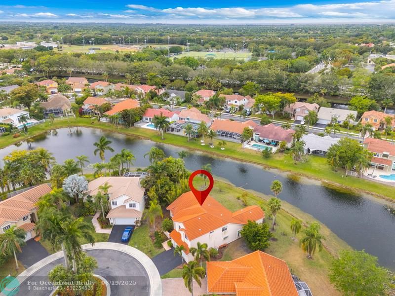 **Just reduced to 905k** Welcome to your new home in Laguna Springs II in Weston. This is an Estancia model on an oversized 12,000 SF Lot, on a quiet cul-de-sac. Property located in a gated close knit community of under 100 homes. Interior has been recently updated, including all the bathrooms and the kitchen with newer appliances. House has hurricane protection including accordian shutters. There is an additional room that can used as a den, library, office or converted into a bedroom. House has a serene lake view with 150 feet of water frontage, as well as an assortment of fruit trees. Newer roof (2019) House within walking distance (<1 mile) of Chabad, churches, parks, schools and shopping centers.