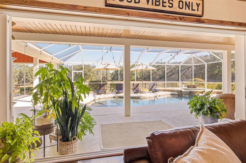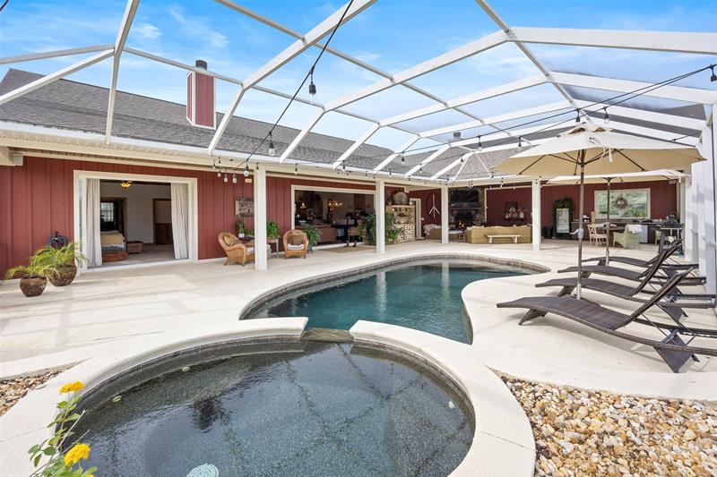 This stunning custom home sits just south of Ocala—The Horse Capital of the World—known for its world-class equestrian farms and facilities. Surrounded by beautiful lakes and the quaint towns of Mount Dora, Eustis, Tavares, and Leesburg, with only 2 miles from Grand Oaks Equestrian Center, and borders the Ocala National Forest with its hundreds of miles of riding and hiking trails. Just 15 minutes away are the Marjorie Harris Carr Cross Florida Greenway and the Florida Horse Park, with even more preserves nearby, plus your very own trail right off the backyard. And for your saddle-bird friends? They will LOVE the bunkhouse. The fully insulated pole barn features A/C, heat, covered trailer parking, an outdoor shower, and a 50-amp RV hookup