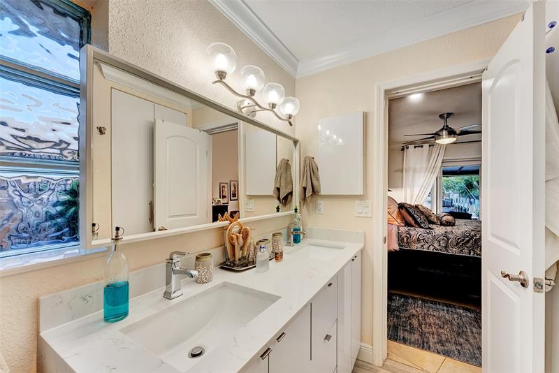 Renovated 3-bedroom, 2.5-bathroom on the Isles of Wilton Manors. Perfect for boating enthusiasts and an amazing view, ceramic tile flooring, recessed lighting, and impact-resistant windows and doors. With 45 feet of waterfront, enjoy a newer Trex dock and a lagoon-style heated and chilled saltwater pool complete with a water feature and built-in spa jets. The outdoor space is adorned with Travertine marble decking, a newer patio canopy, and lush tropical brand new landscaping. The kitchen is a chef's dream, featuring white cabinetry, new stainless steel appliances, a walk-in pantry, and a new quartz island and countertops. The modern bathrooms are completely updated. A versatile bonus room can serve as a media room, office, or studio, equipped with A/C and a half bath! Newer roof and AC!