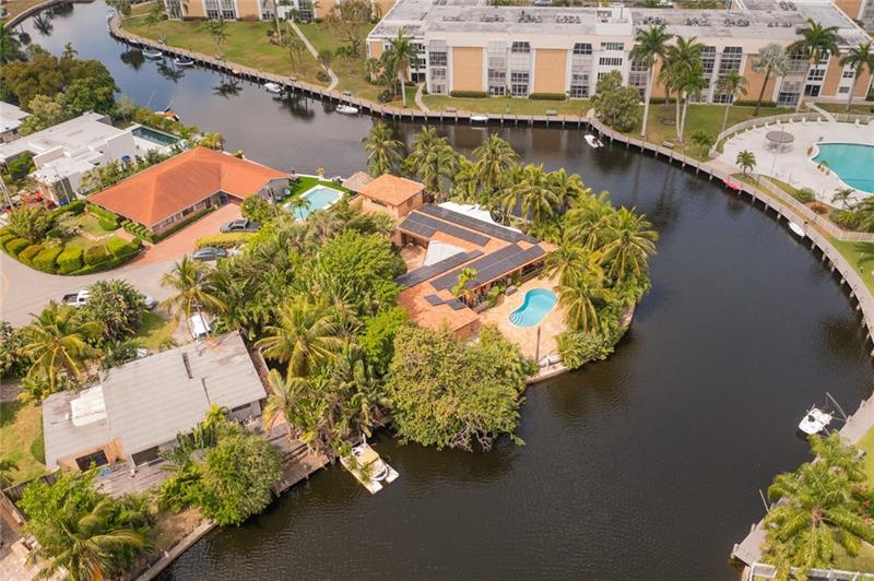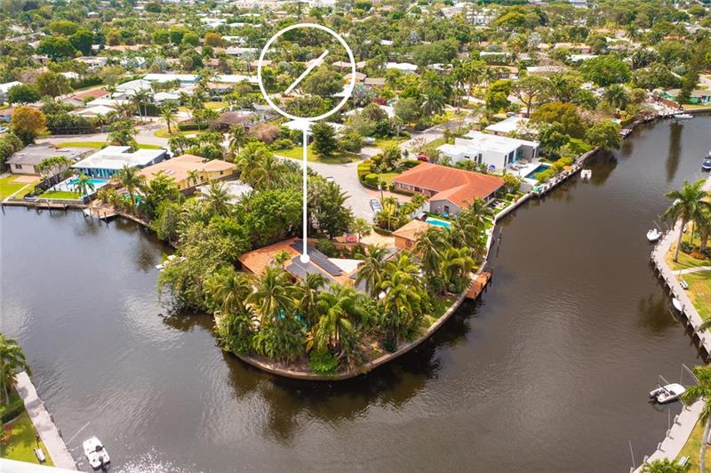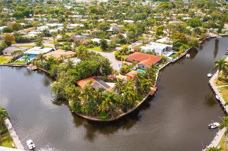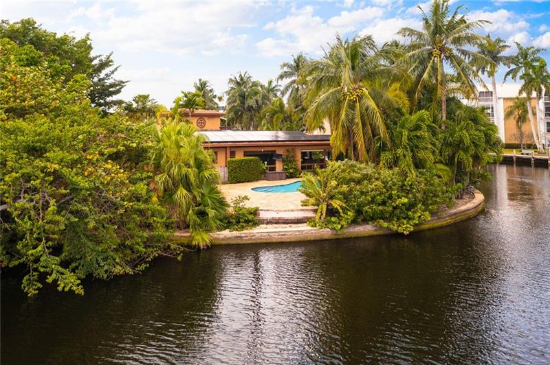 Once in a while a special opportunity presents itself. THIS IS IT! Possibilities abounds with this 4br/4.5 bath Peninsular Point Lot home on the North Fork of the Middle River. Sited on over a 1/4 acre with 210 feet of Waterfrontage and multiple tropically landscaped spaces, you can let your imagination run wild. Great Open Concept with updated Kitchen and walls of Impact Glass Windows overlooking the many vignettes this one of a kind home offers. Romantic Courtyard Entrance with Fountain and lovely entertaining space. Huge Master Bedroom, with very generous walk in closets and an updated bath. Newer Roof and Solar panels. Great central location, close to Wilton Drive, DWTN FTL, Beaches, Shopping and Highways. 3 fixed bridges to the Ocean, with mean low tide clearance ~ 5'6".