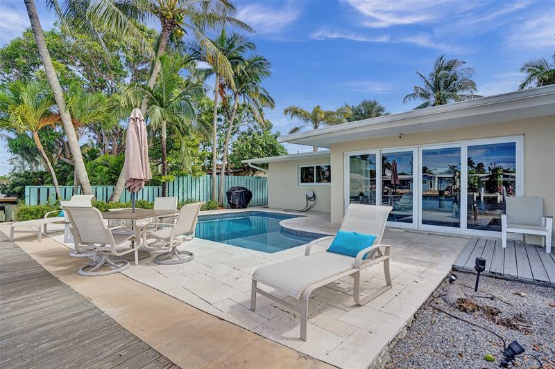 STUNNING EAST WILTON MANORS 3/2 WATERFRONT HOME IN SOUGHT-AFTER CORAL GARDENS NEIGHBORHOOD. NO EXPENSE WAS SPARED IN THIS COMPLETELY RENOVATED HOME. LOFT-LIKE, VAULTED CEILINGS, AND A SEAMLESS FLOW FROM ENTRY TO BACKYARD ON THE NORTH FORK OF MIDDLE RIVER. INTERIOR FEATURES A COMPREHENSIVE RENOVATION WITH QUARTZ COUNTERTOPS IN KITCHEN AND BATHS, IMPORTED GLASS TILE BACKSPLASH, BLANCO SOLID SURFACE SINK, NEW APPLIANCES INCLUDING PROPANE RANGE, AND NEW ELECTRICAL SYSTEM. IMPACT GLASS SLIDERS. NEW 2020 ROOF, PROPANE GAS TANKLESS WATER HEATER. EXTERIOR BOASTS A COMPLETE POOL RENOVATION WITH FIRE PIT AND WATERFALL, 80' WATERFRONT, RAISED SEAWALL, NEW PILINGS, AND 70' DOCK. PLUS, MUCH MORE. BEING SOLD FURNISHED.