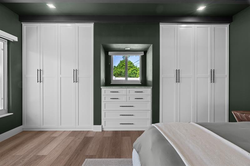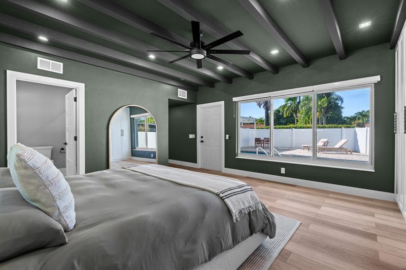 Beautifully updated and full of character, this Wilton Manors corner-lot pool home offers 3 bedrooms, 2 baths, and a warm modern aesthetic. The open living, dining, and kitchen areas are tied together with wood flooring and striking exposed beams. The designer kitchen features quartzite counters, custom cabinetry, soft-close drawers, and under-cabinet lighting. The spacious primary suite easily accommodates a king bed and includes a custom closet system and a spa-like bath with marble floors, a trough sink with dual faucets, and a rainfall shower. Additional perks include a tankless water heater and gas-powered dryer and cooktop. Outside, the property has a fenced in pool and patio and extra side yard that is framed by mature tropical fruit trees including mango, and avocado.