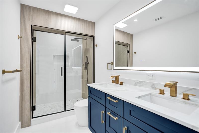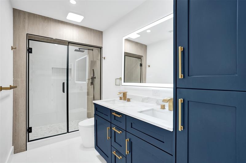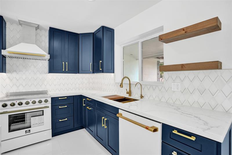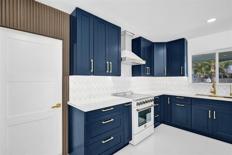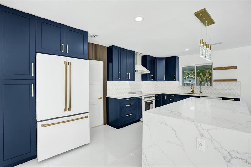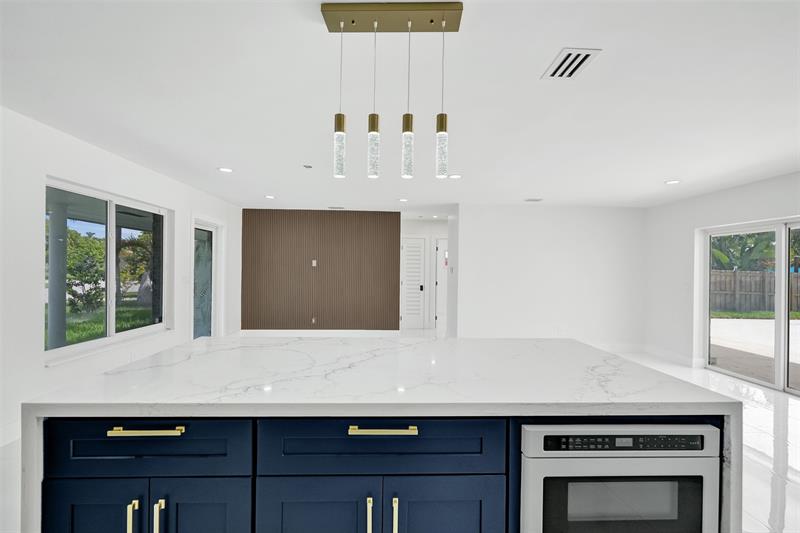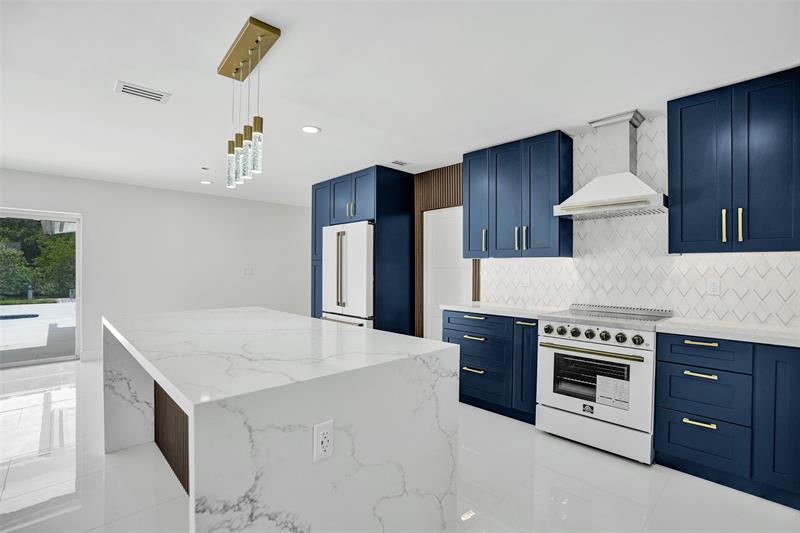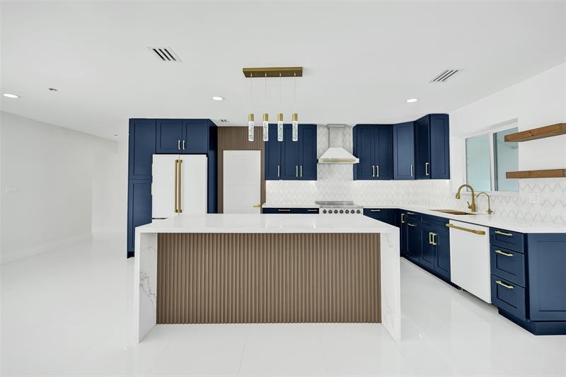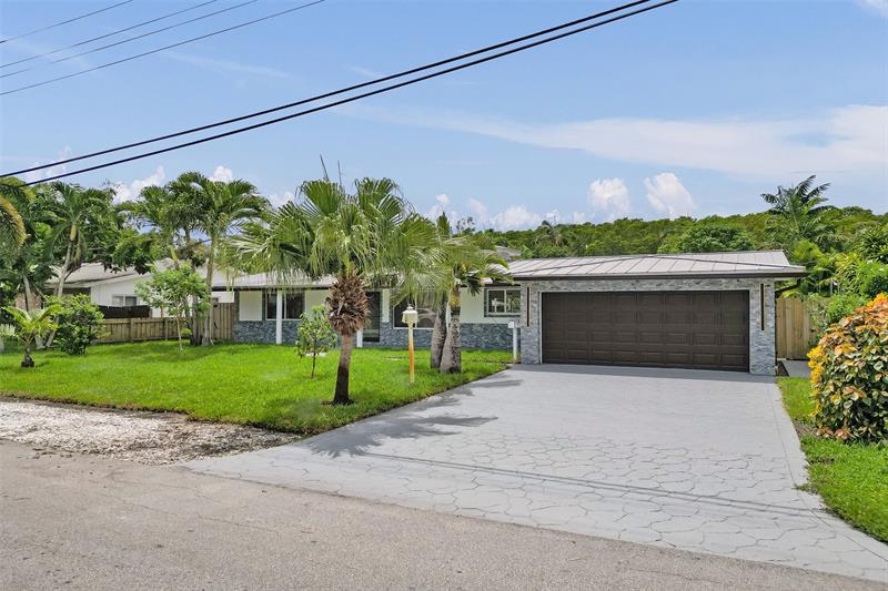 For those seeking a luxuriously remodeled, contemporary home w/ ocean access & extensive upgrades, look no further—this is your private paradise! Striking stacked-stone façade w/ 2002 metal roof & energy-efficient 2024 solar panels. Inside, the open-concept kitchen showcases shaker cabinetry, quartz counters, waterfall-edge bar & premium appliances accented in gold. Split BR layout ensures privacy, while spa-inspired baths create a resort-like atmosphere. Elegant porcelain tile flows thru/out, supported by a 2-zone AC system (2020/2022). Step outside to your oversized backyard designed for entertaining, featuring Jerusalem stone patio, sparkling pool, tiki hut & private dock. 2-car garage, sep. laundry, upgraded lighting, fans & more add to this exceptional property...a true must-see!