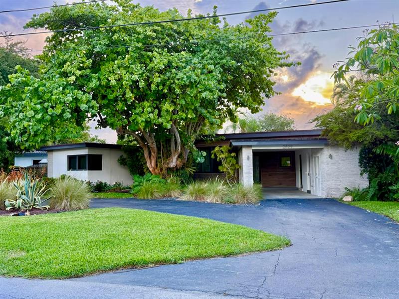 Discover your Mid Century "turn key" dream home in this stunning contemporary waterfront property, currently operated as a permitted Airbnb! This beautifully designed two-bedroom, two-bath residence features exquisite travertine flooring and a modern chef's kitchen equipped with stainless steel appliances, perfect for culinary enthusiasts. Home features, newer roof, new dock, "Eurotech" impact windows and doors, along with modern smart home features and lighted accent wall, open living area, adorned with mid-century vaulted ceilings, allowing natural light to illuminate your surroundings. Home is being sold fully furnished. Bring your kayak or paddle board and enjoy touring Middle river, !! Mins to Wilton Drive and the shoppes of Wilton Manors, easy access to beaches and 95 !